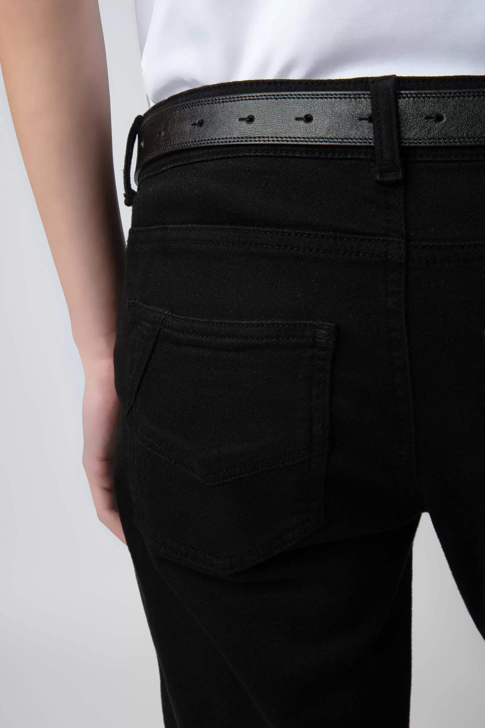 Jean Slim Femme Noir En Coton – Longueur Cheville Plus Courte – Ourlets Bruts – Poches Avant Zippées – 1 Poche Passepoi…