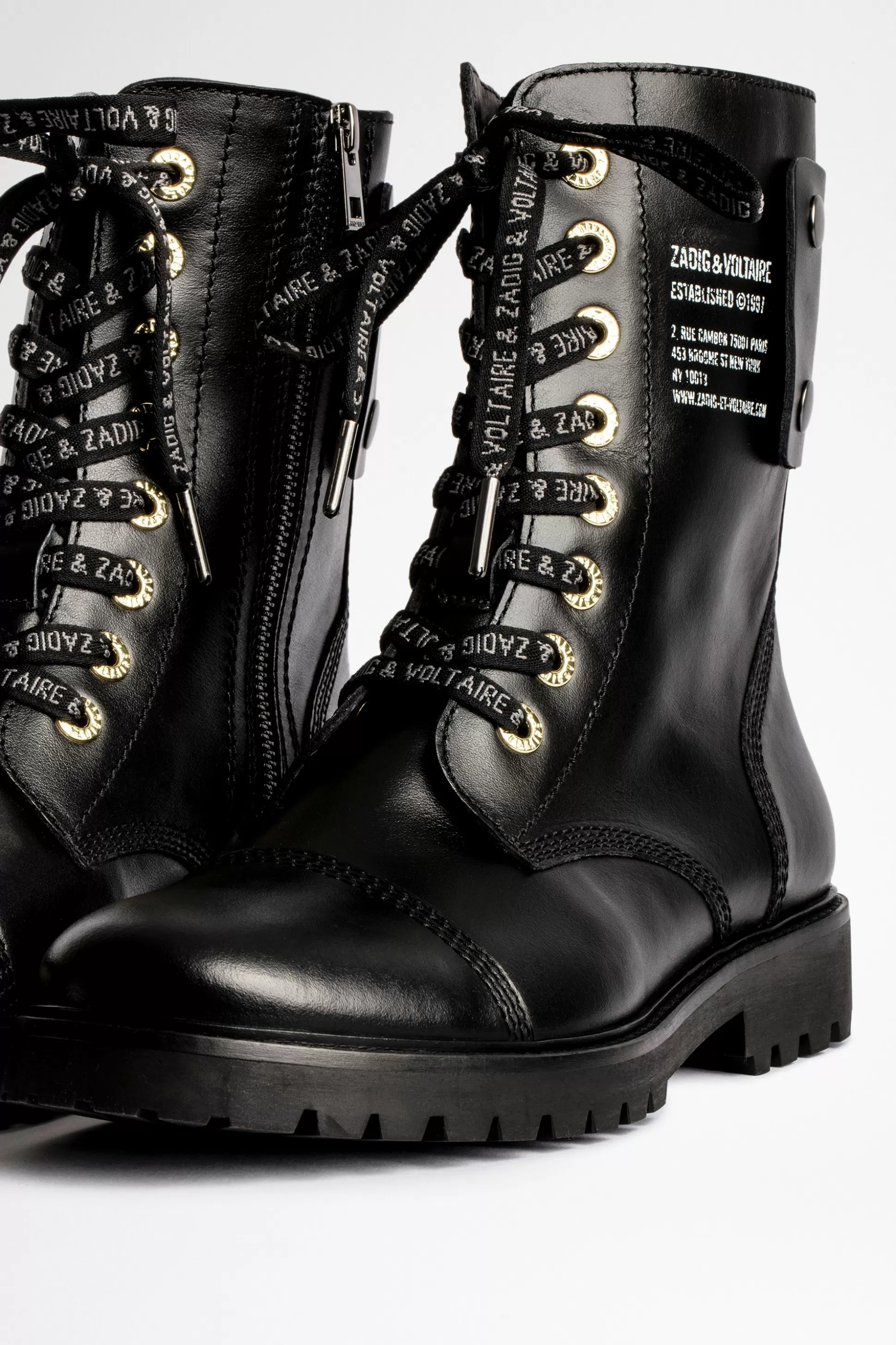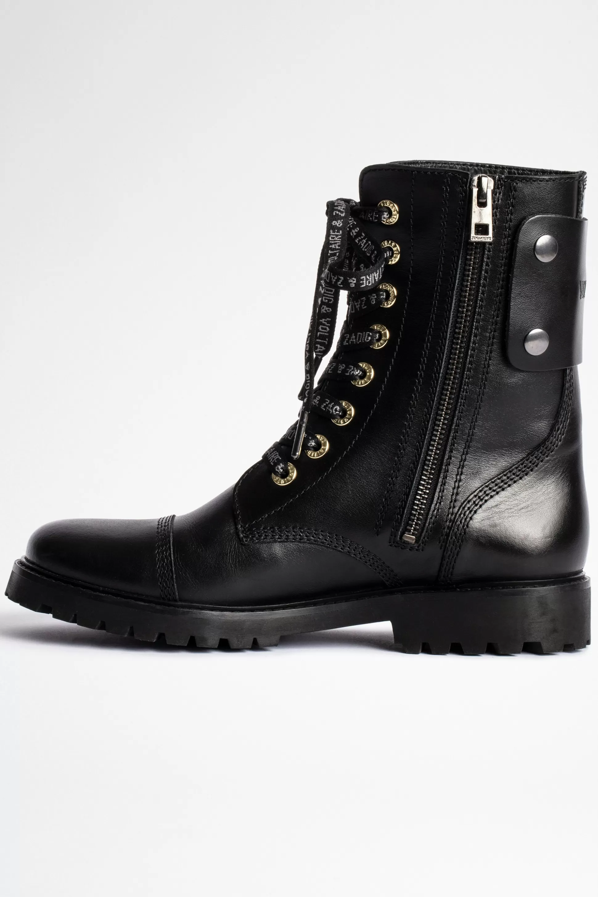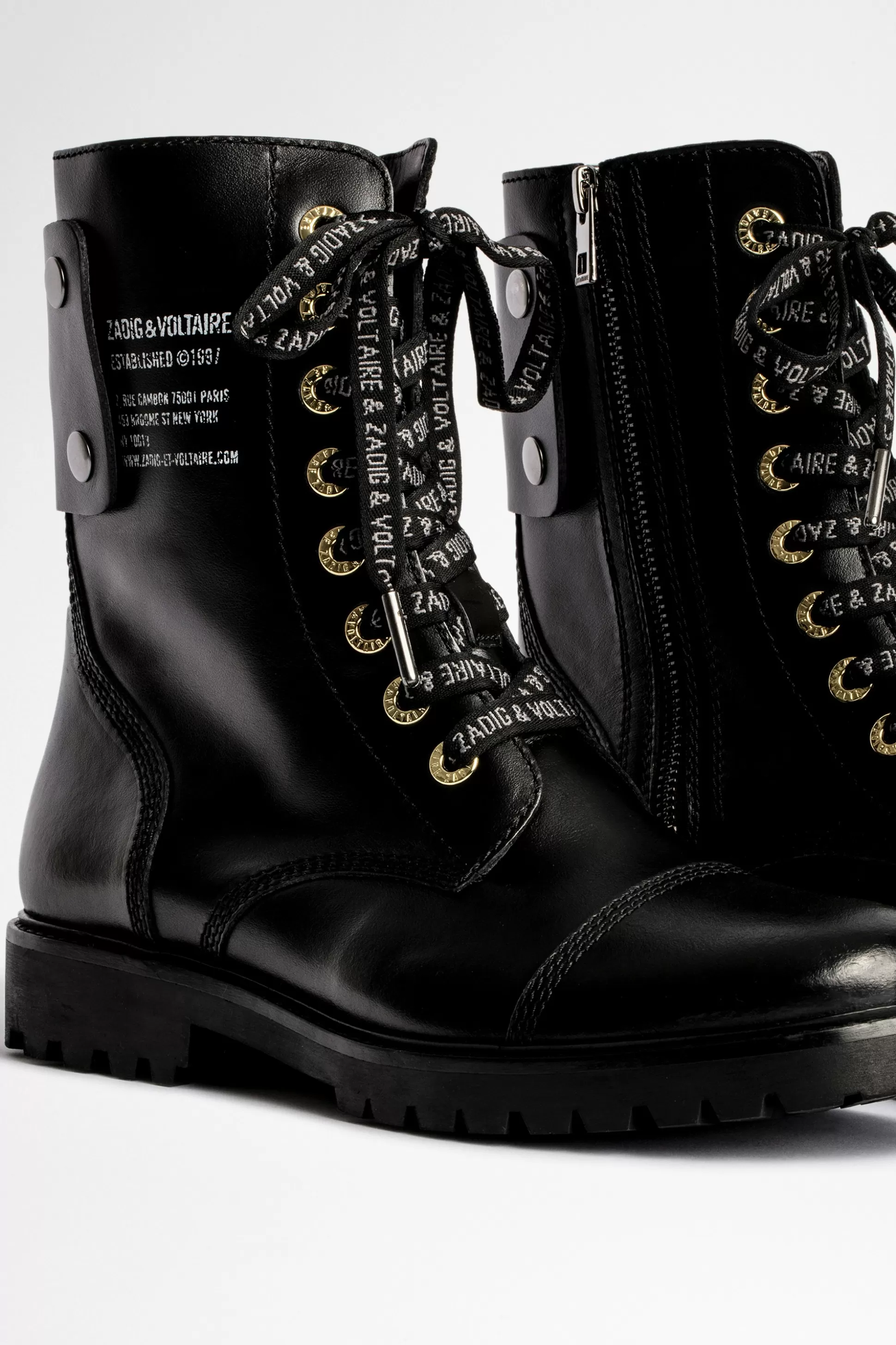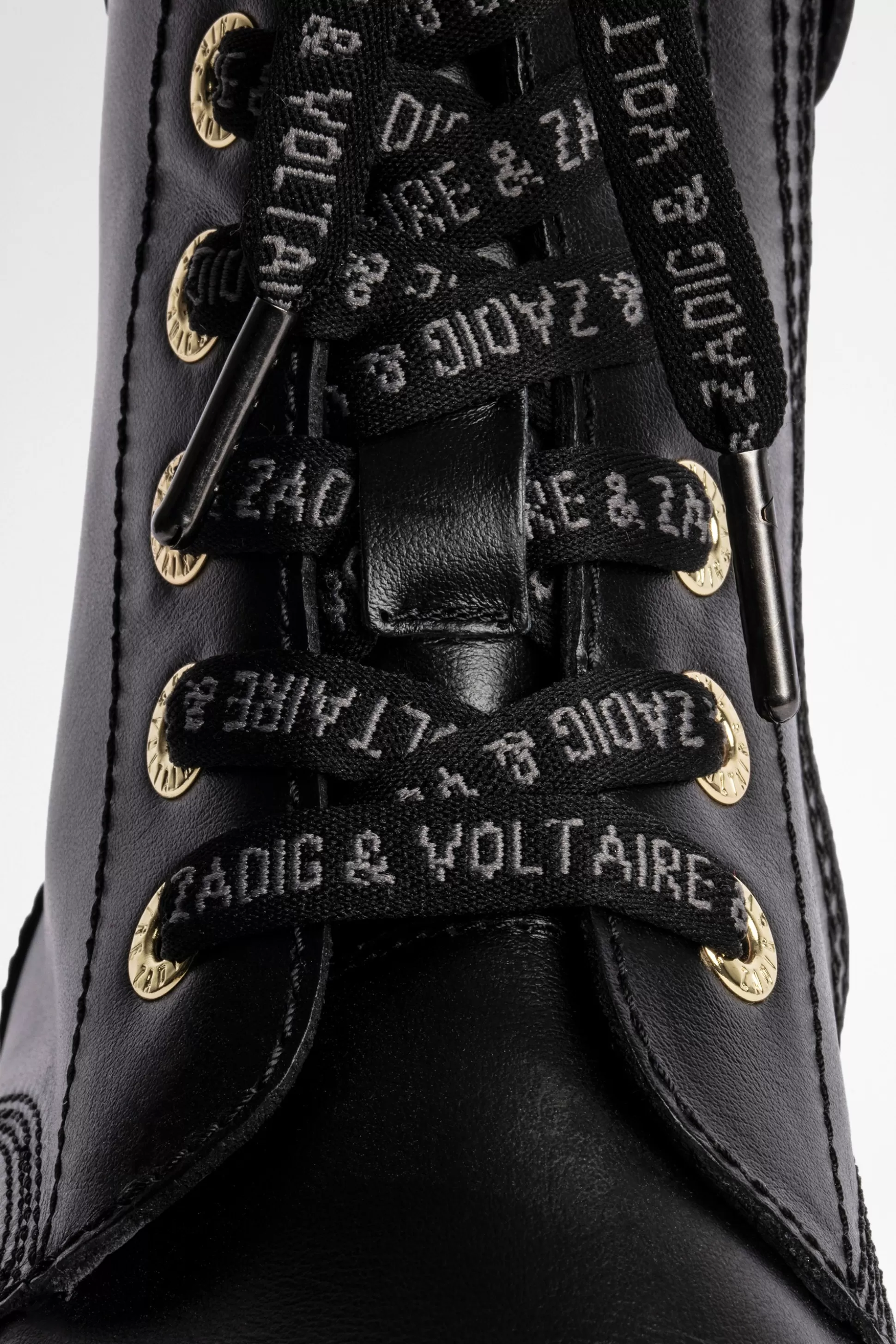 – Rangers Montantes Femme En Cuir Lisse Noir – Lacets Jacquard « Zadig&Voltaire » – Badge Extérieur – Empiècement Ar…