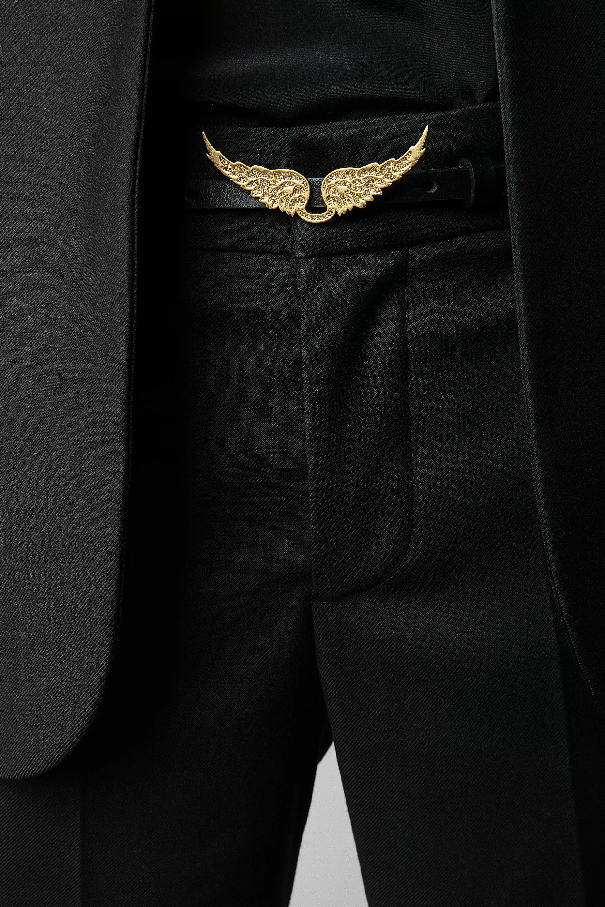 – Ceinture Rock Femme En Cuir Noir- Boucle Ailes- Ajustable- Fabriquée En France