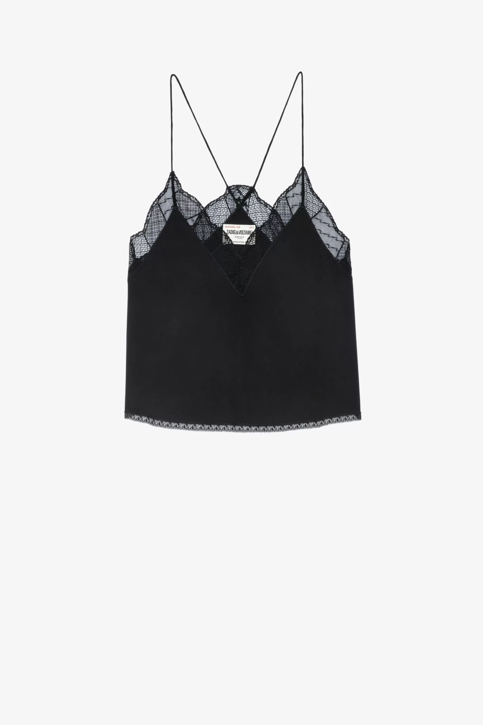 – Caraco Crop-Top En Soie Noire Femme Zadig&Voltaire