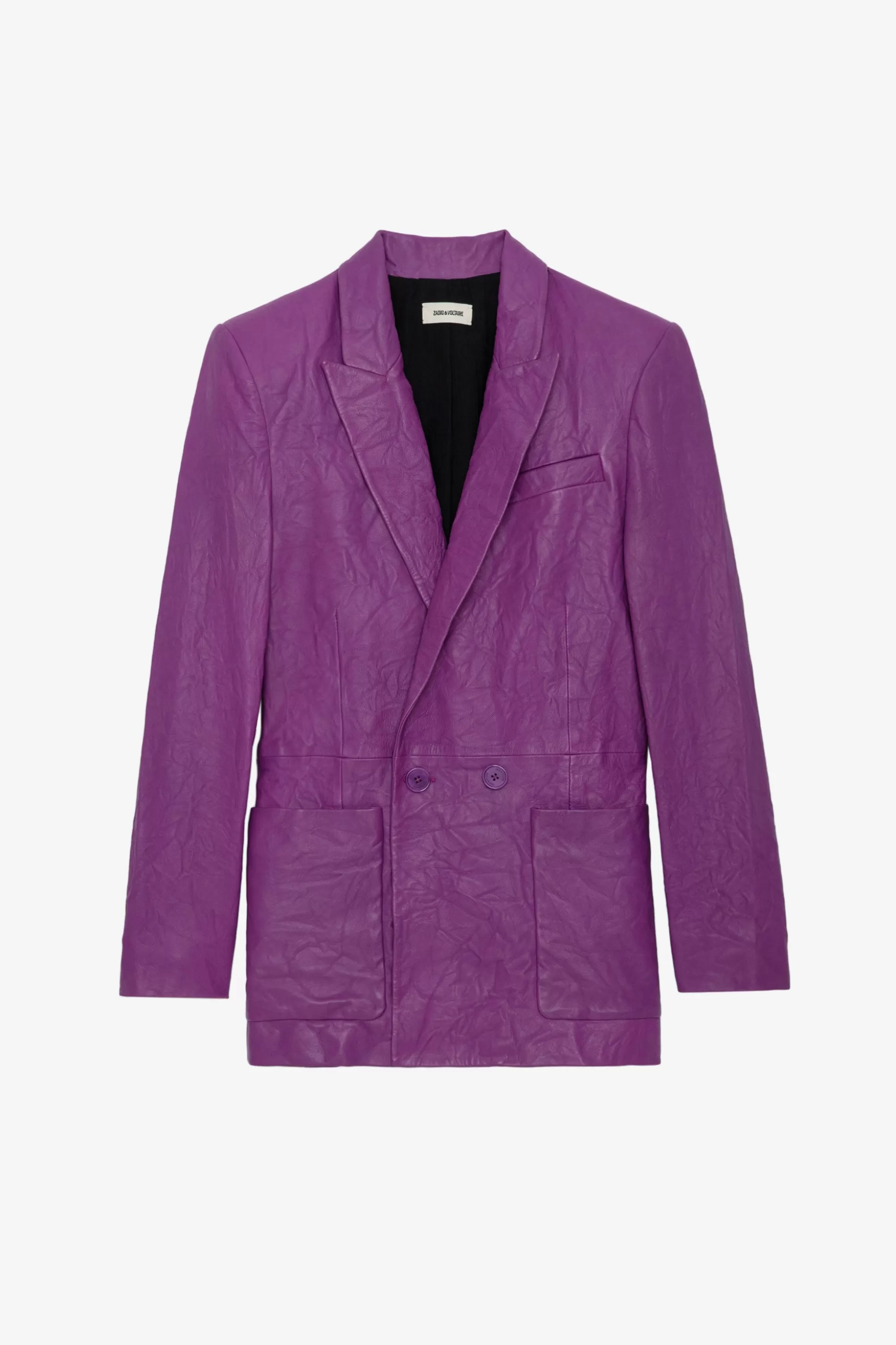 – Blazer Femme En Cuir Froissé Violet Goa – Col Tailleur Et Épaulettes – Fermeture Croisée – 2 Poches Et 1 Poche Pass…