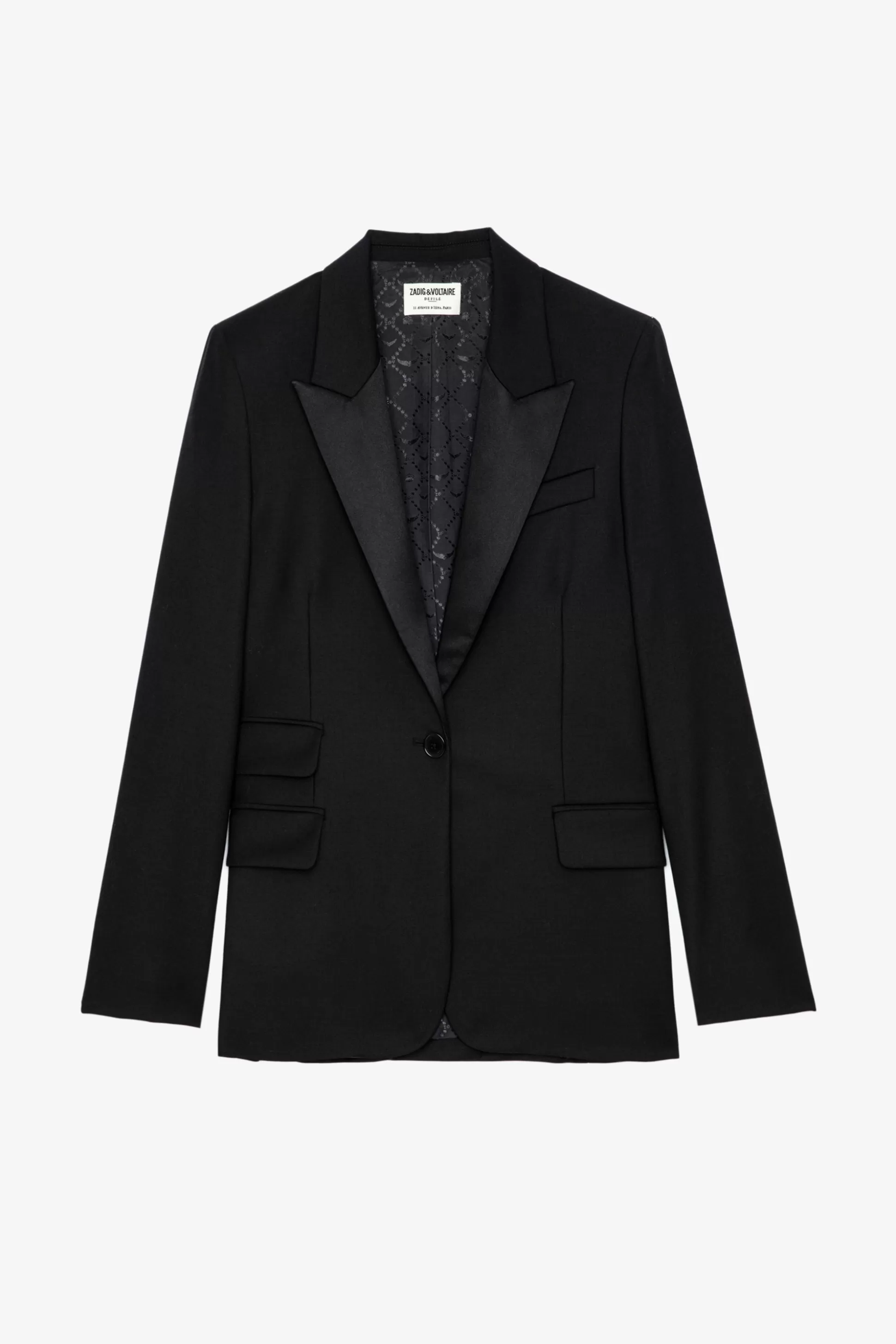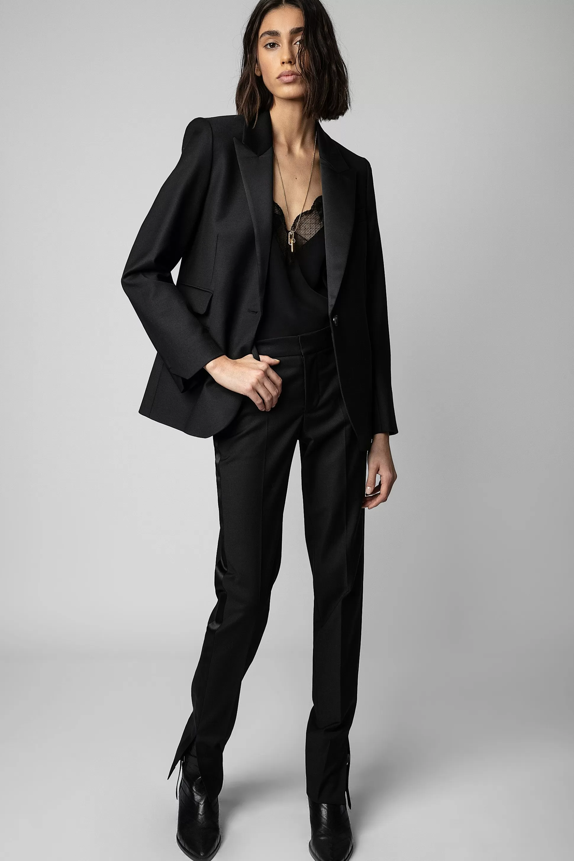 Cette Saison, Zadig&Voltaire Revisite Le Smoking Avec Style. Ce Blazer Possède Un Large Col En Satin, Des Poches À Rabat, Des Manches Longues Avec Poignets En Mitre Et Une Fente Au Dos.