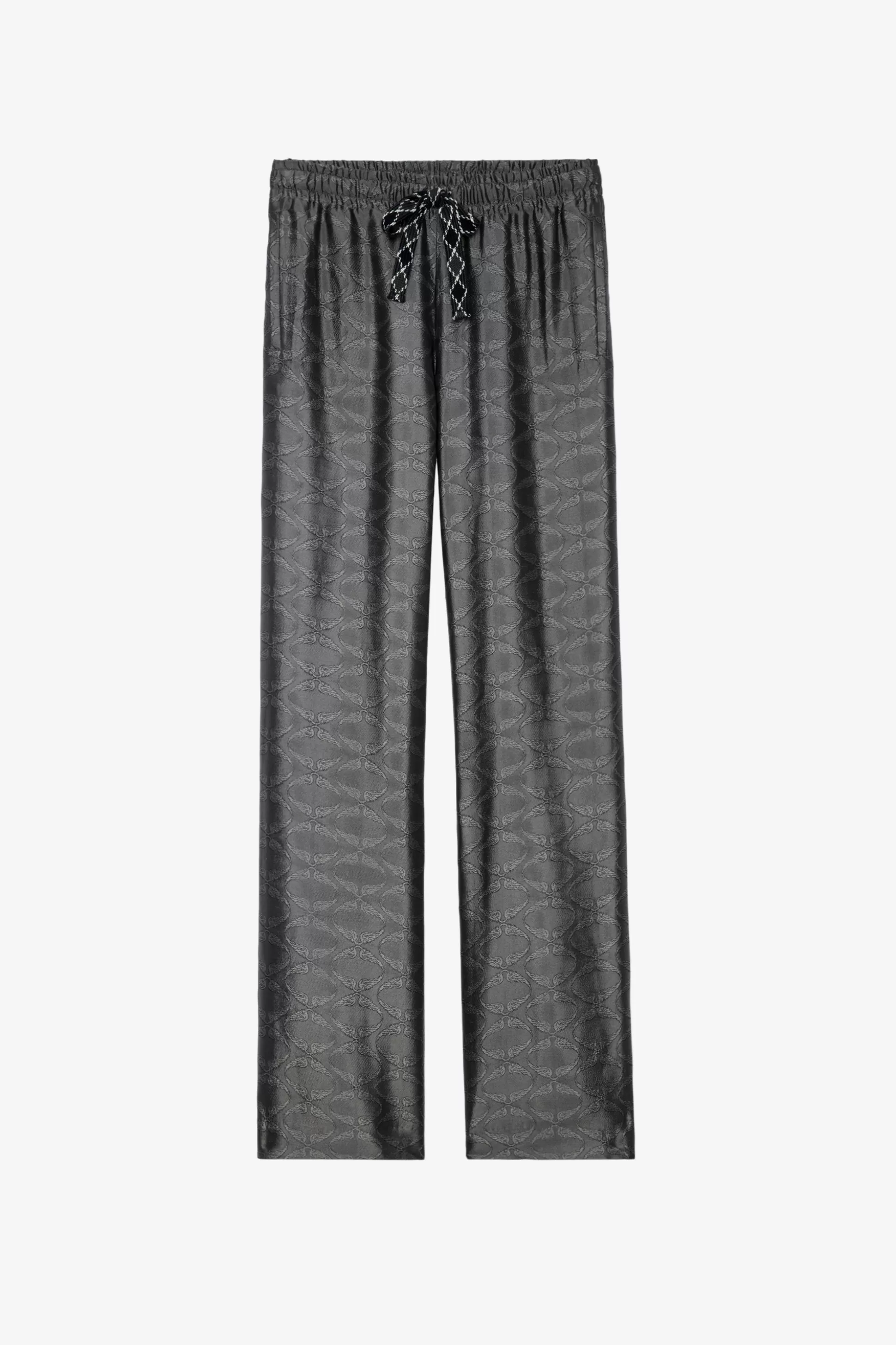 – Pantalon Fluide Femme Anthracite En Jacquard Imprimé Ailes