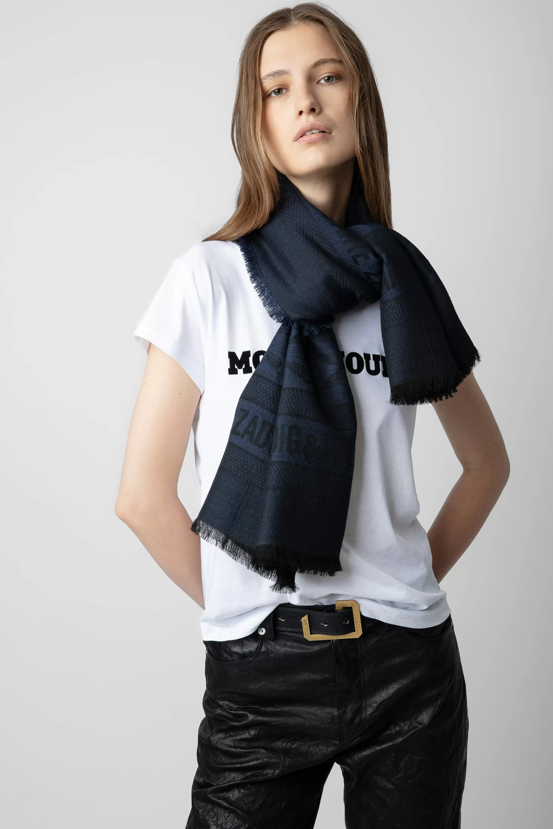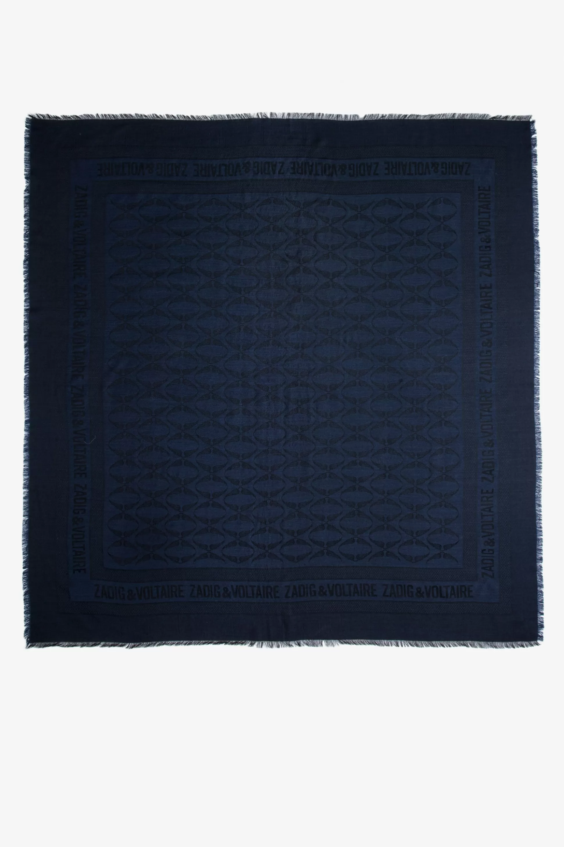 – Foulard Rectangulaire En Jacquard Bleu Marine Ink Femme – Motifs Et Signature Zadig&Voltaire – Bordure À Franges – Fa…