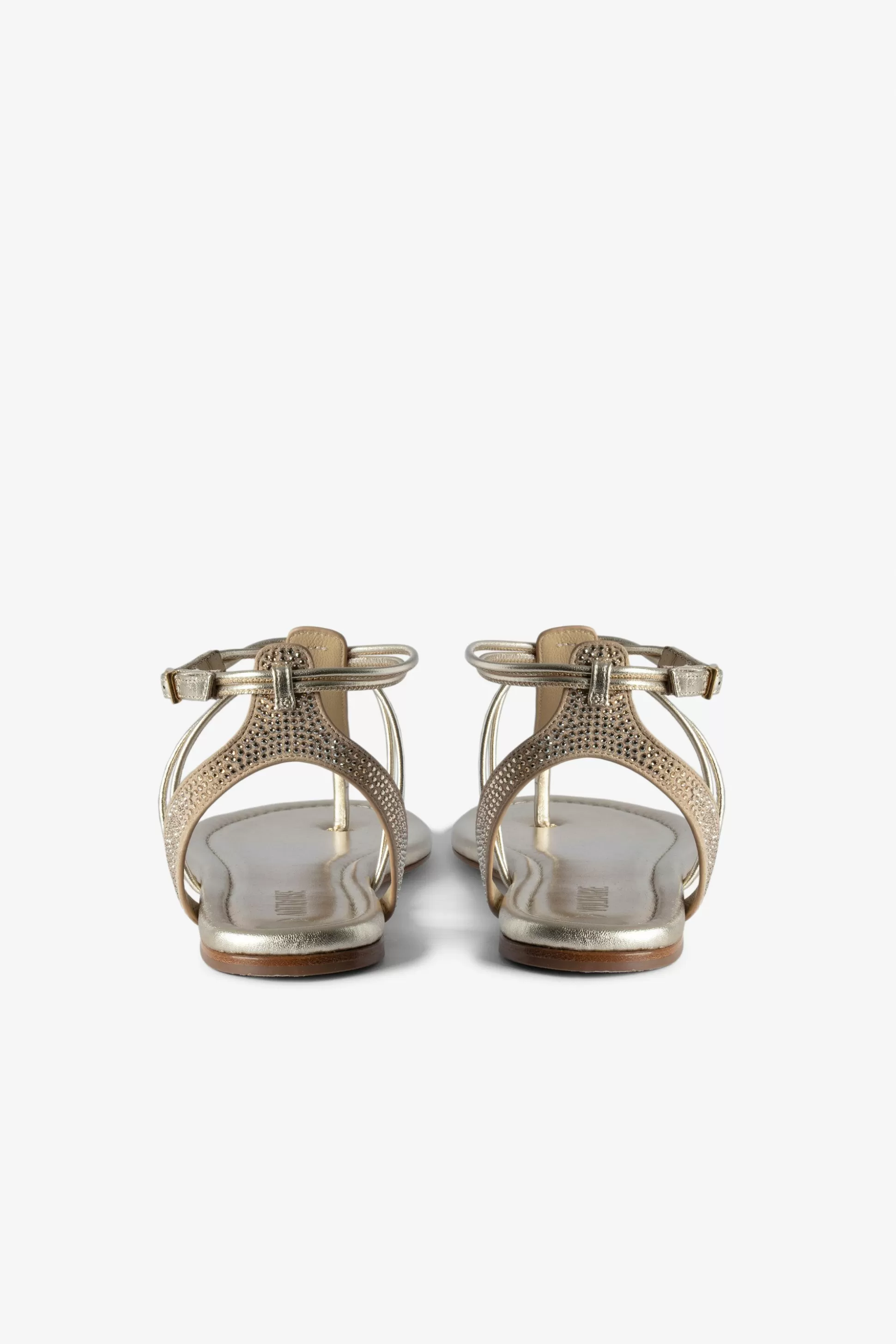Sandales Femme En Cuir Métallisé Doré Effet Vintage – Bride Avec Boucle Réglable – Brides En Strass Swarovski® – Fa…
