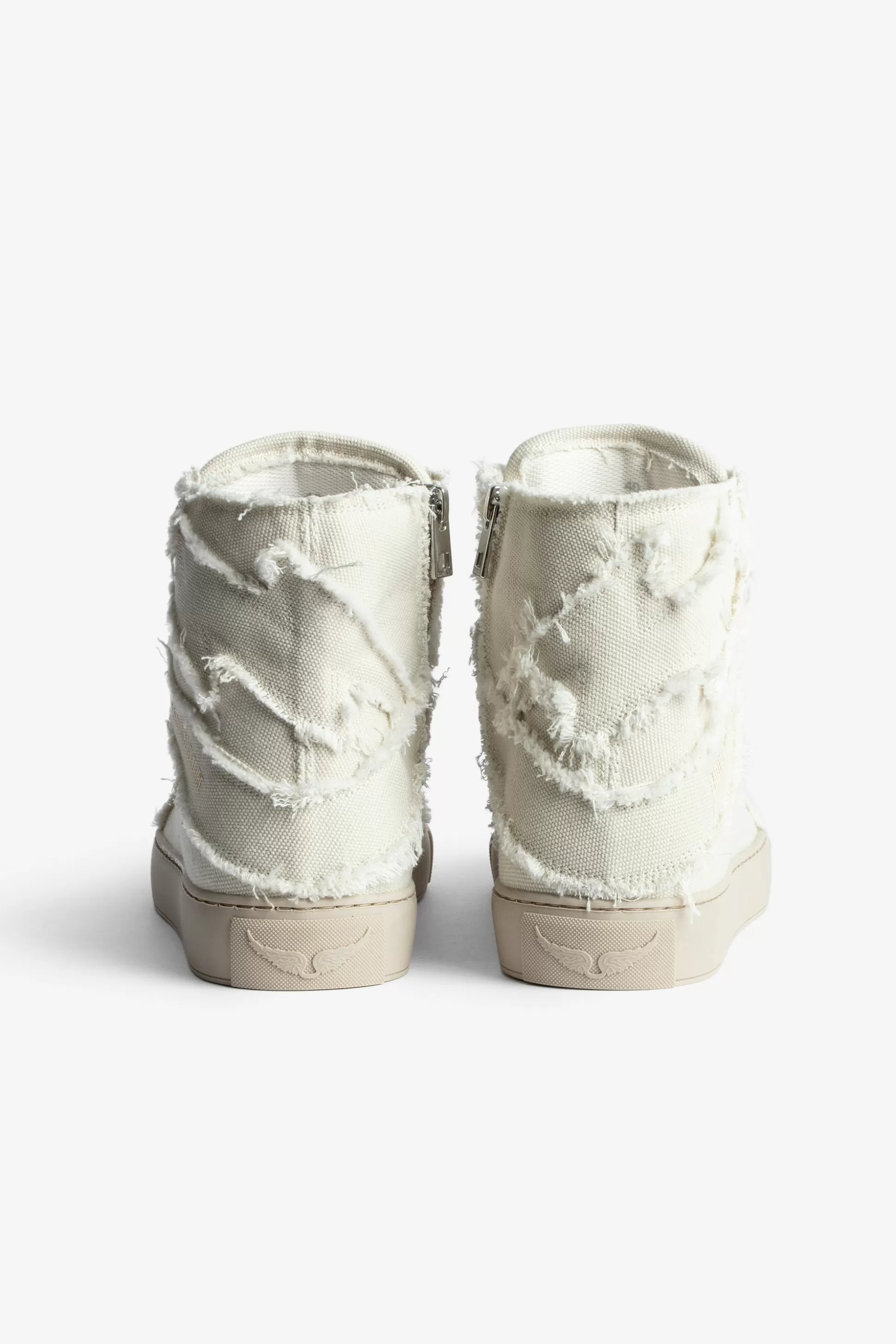 – Baskets Montantes Zv1747 Zadig&Voltaire Femme En Toile De Coton Écru Flash