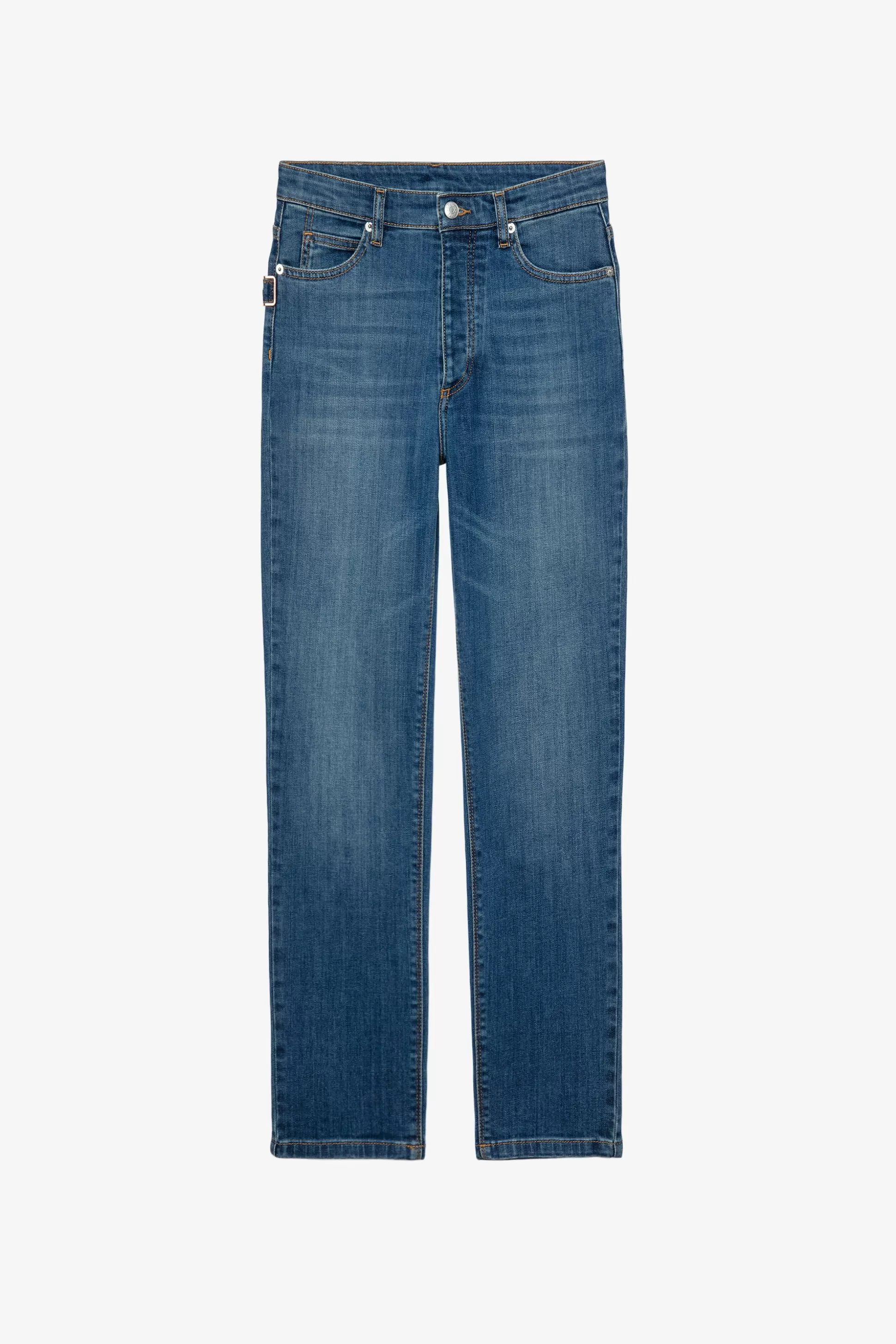 Jean Femme Coupe Droite En Denim Bleu Délavé Zadig&Voltaire – 5 Poches Et Passant De Ceinture À La Taille- Demi-Lune …