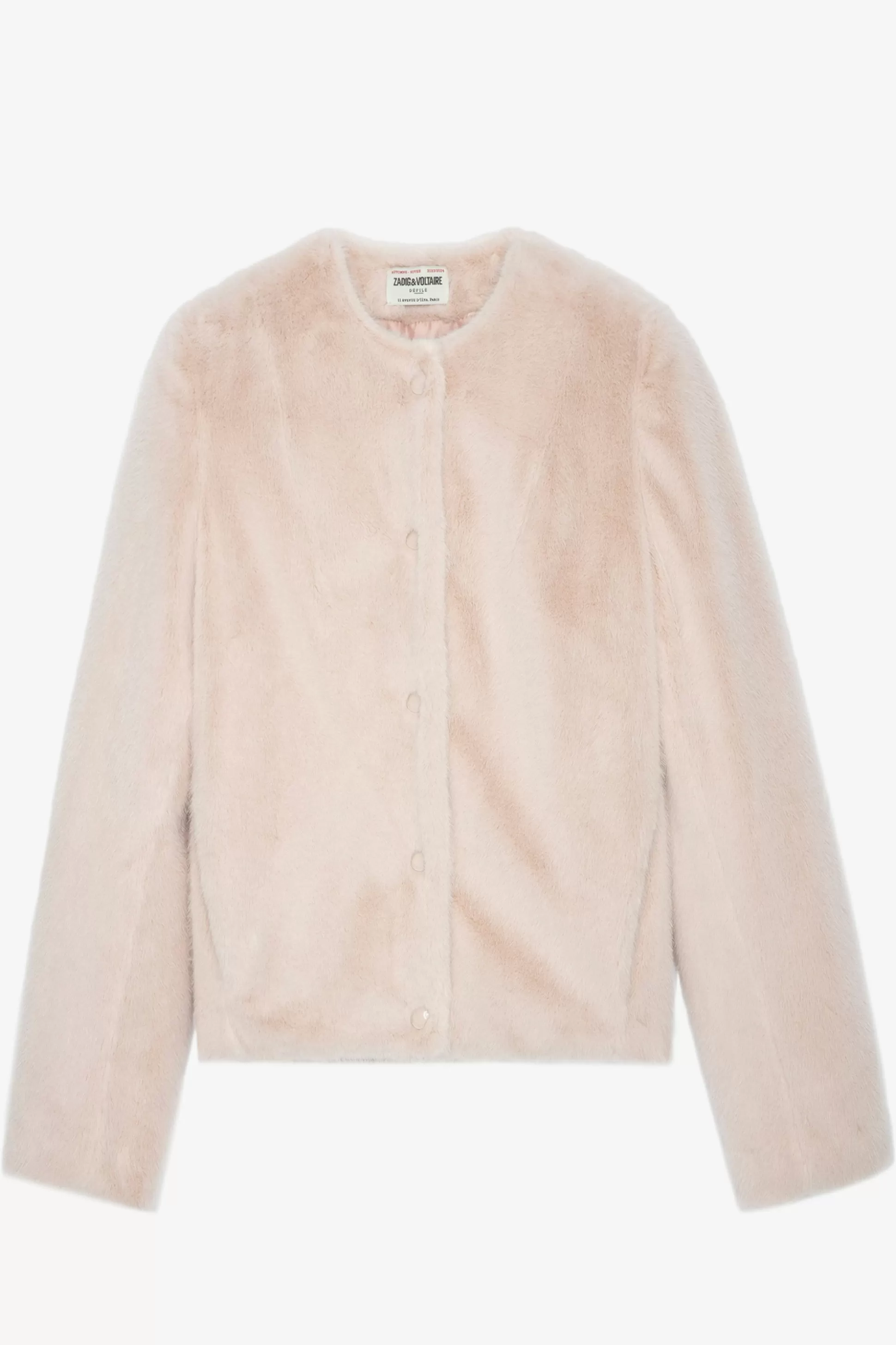 Manteau En Fausse Fourrure Rose Poudré Femme – Col Rond