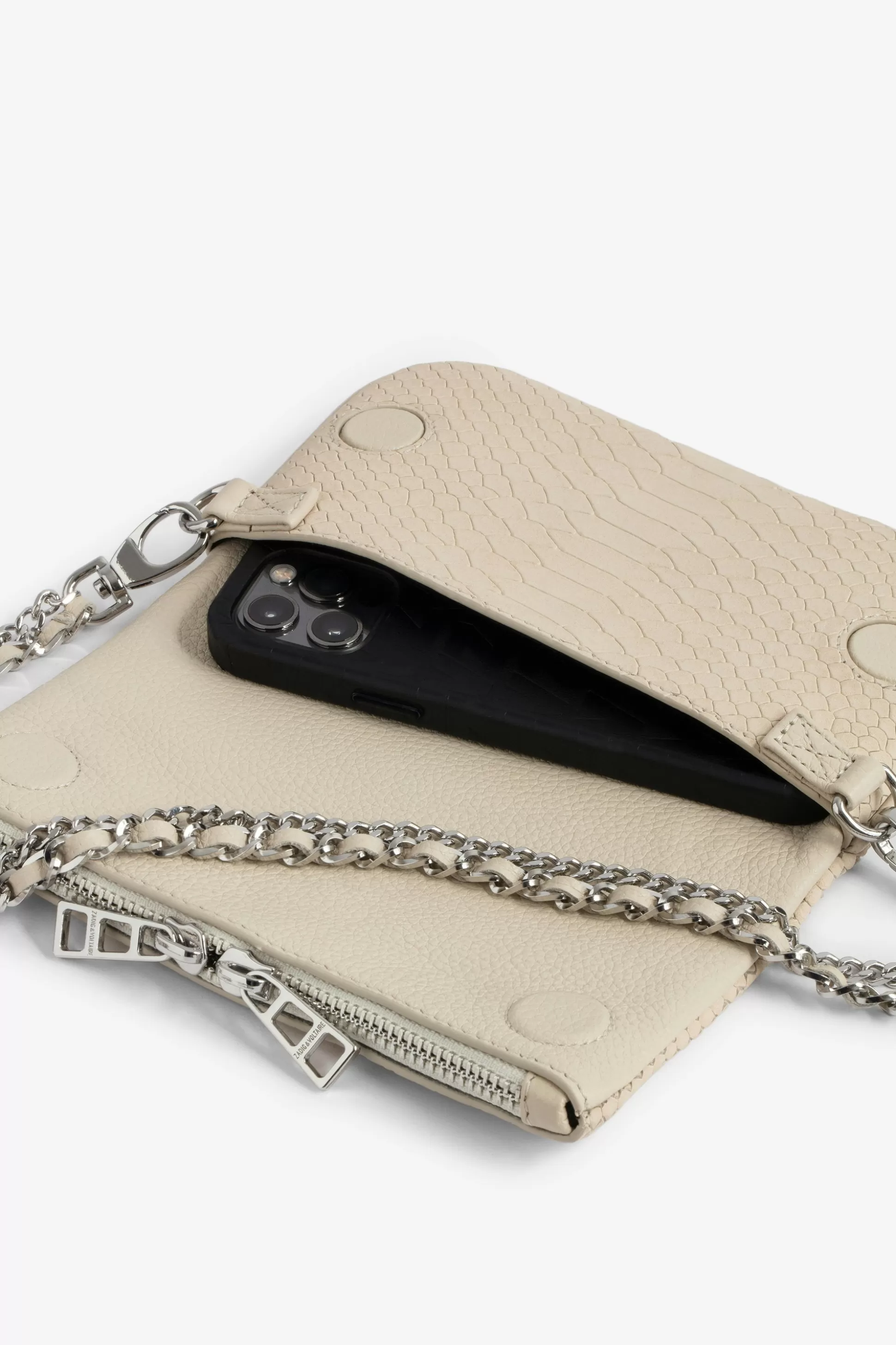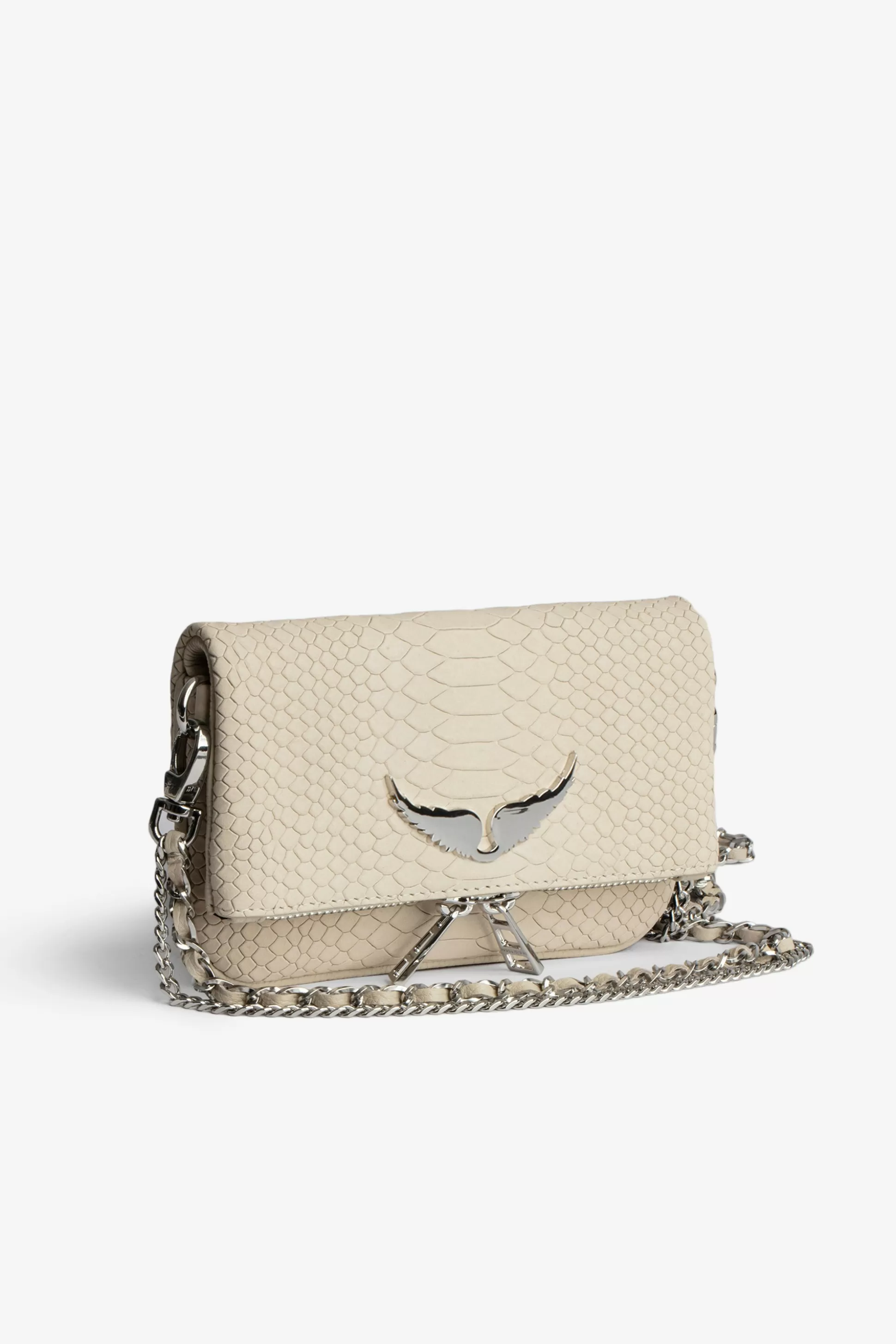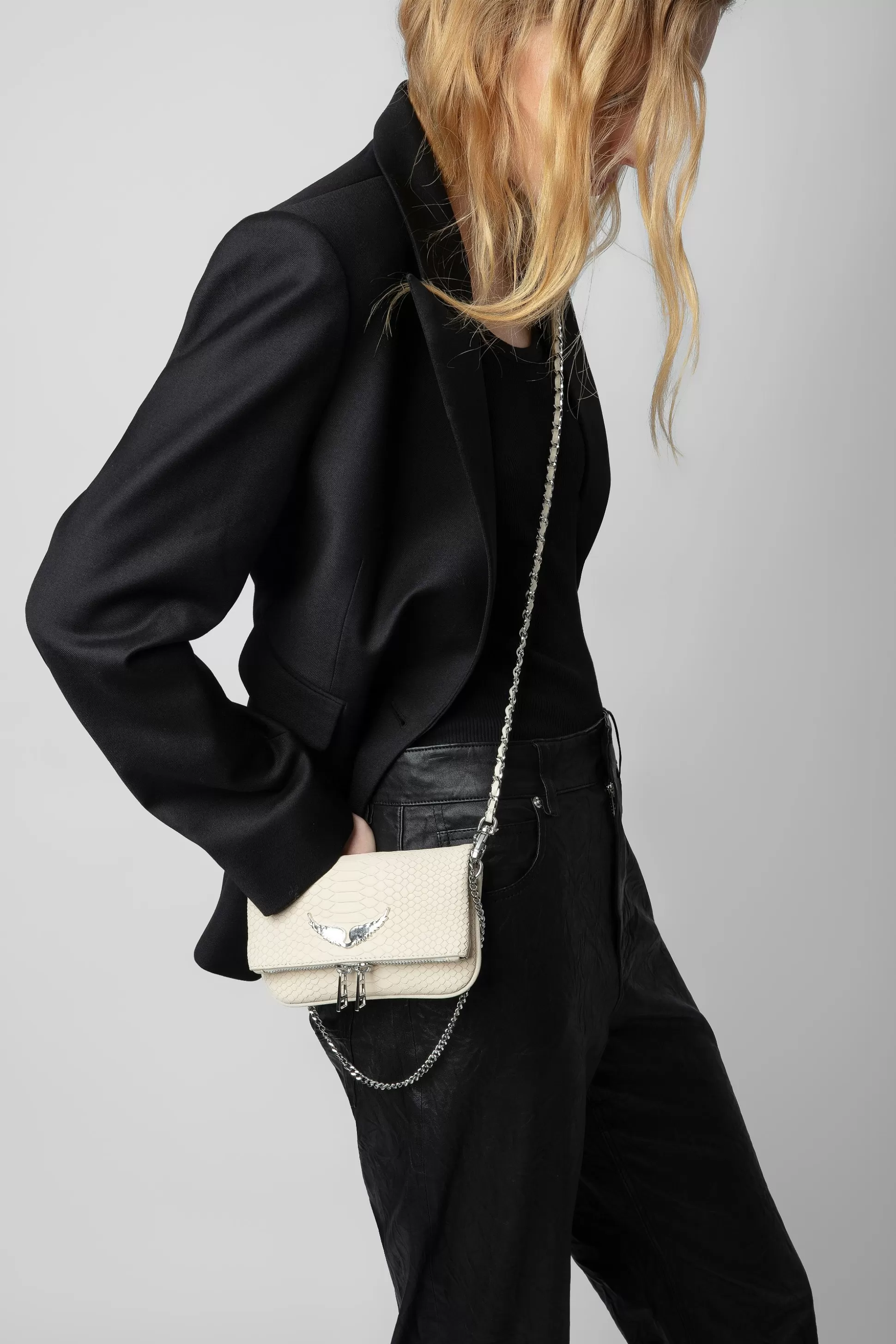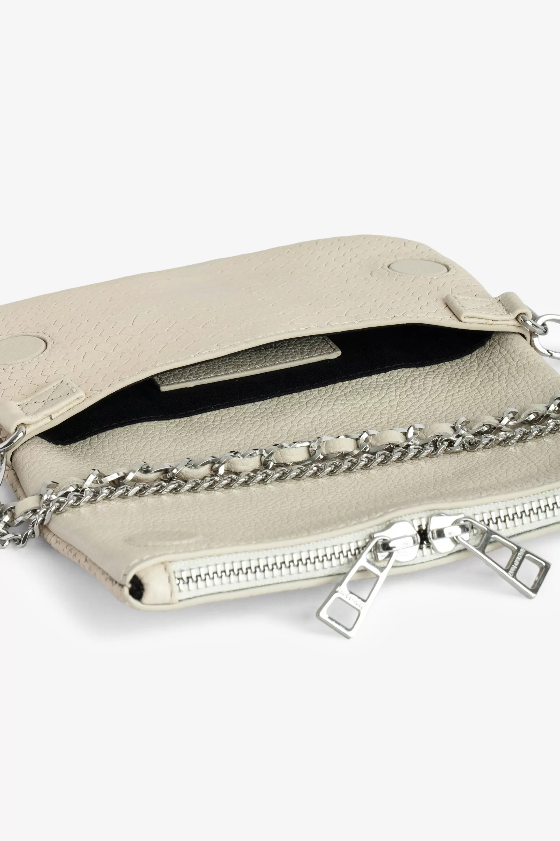 Pochette Femme Emblématique Nano Rock En Cuir Effet Python Écru Flash
