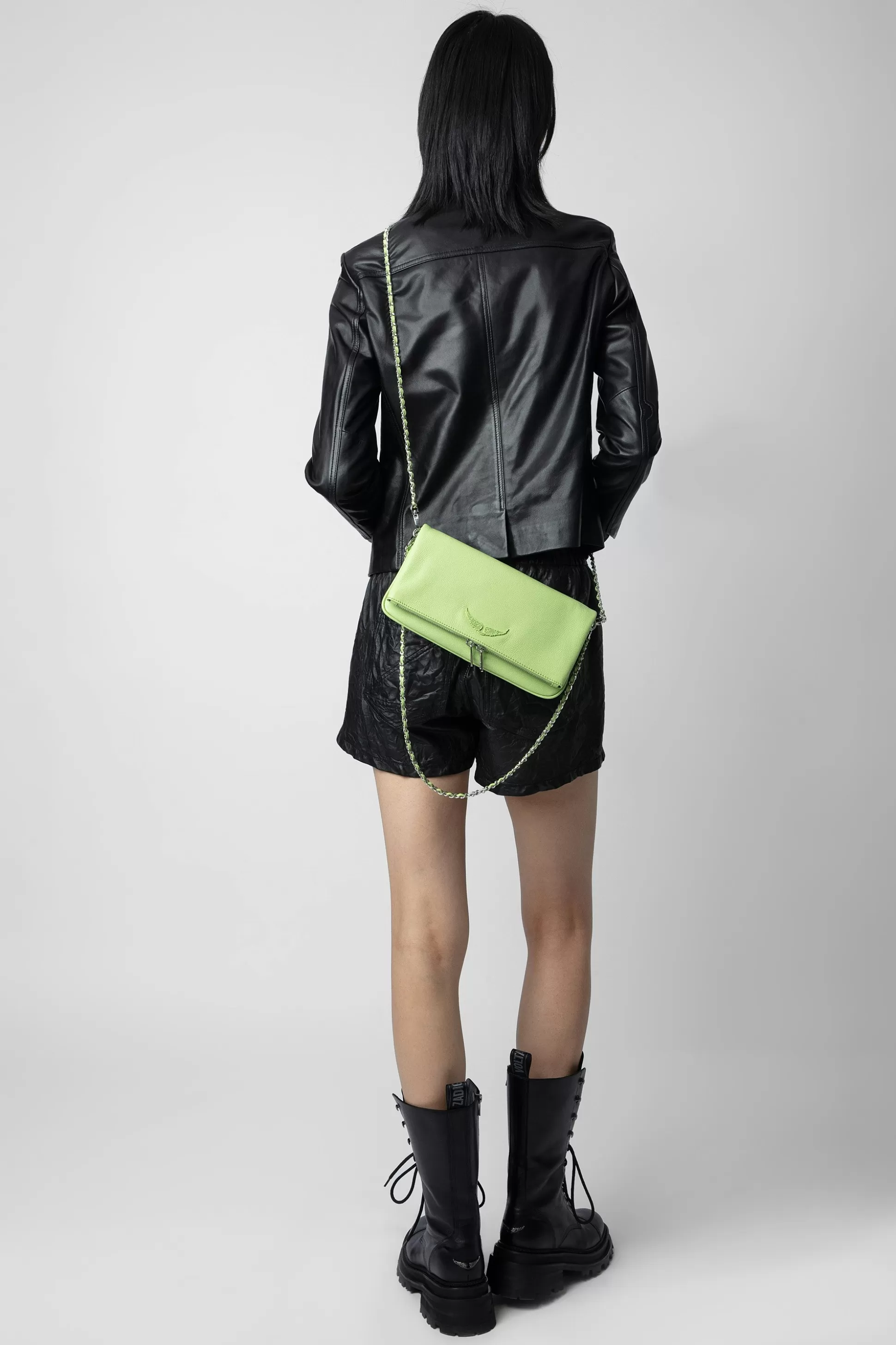 – Pochette Rock Femme Tonic En Cuir Grainé Jaune-Vert