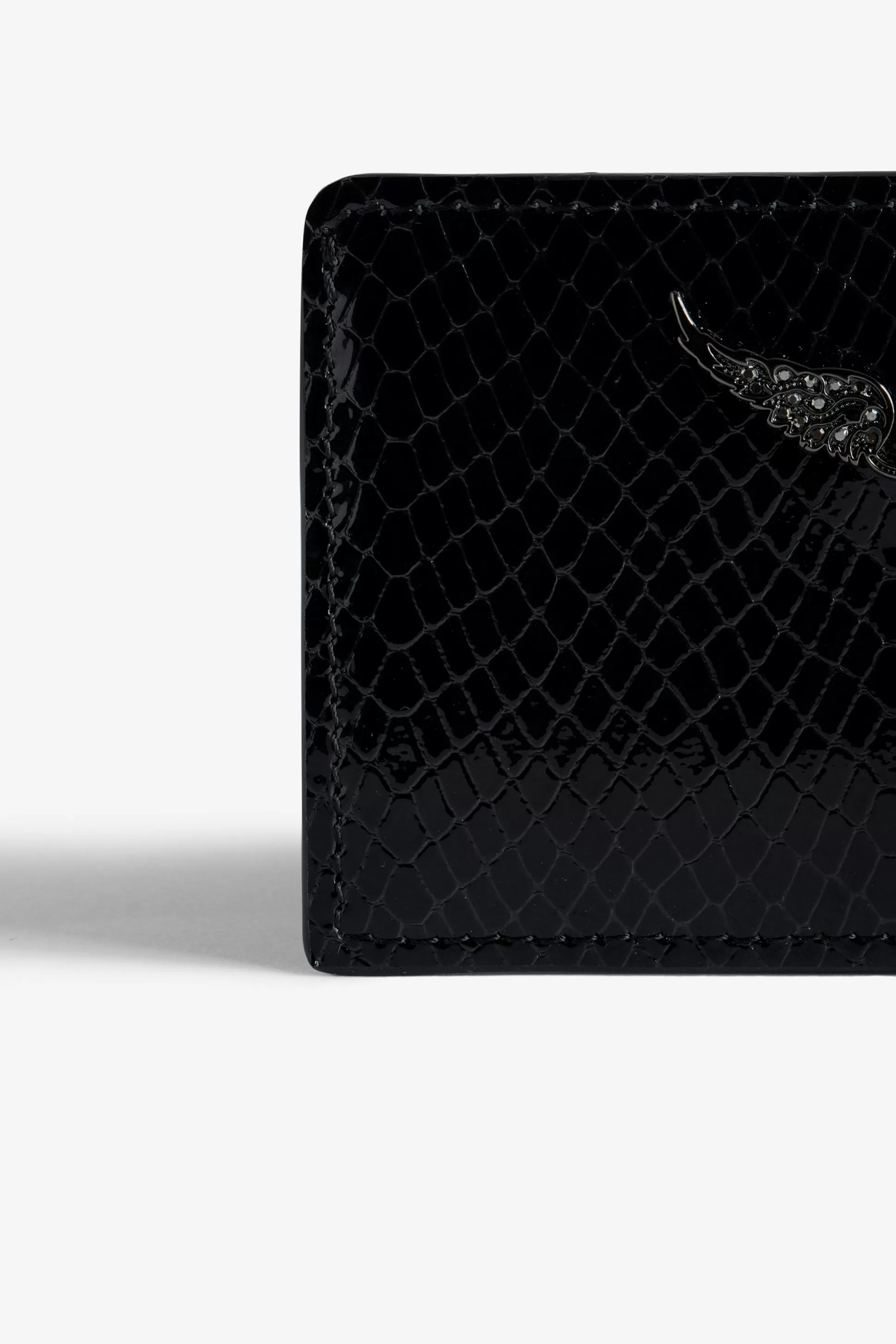 – Porte-Cartes Zv Pass Femme En Cuir Verni Effet Python Noir – Charm Ailes En Métal Avec Strass Argentés – 2 Emplaceme…