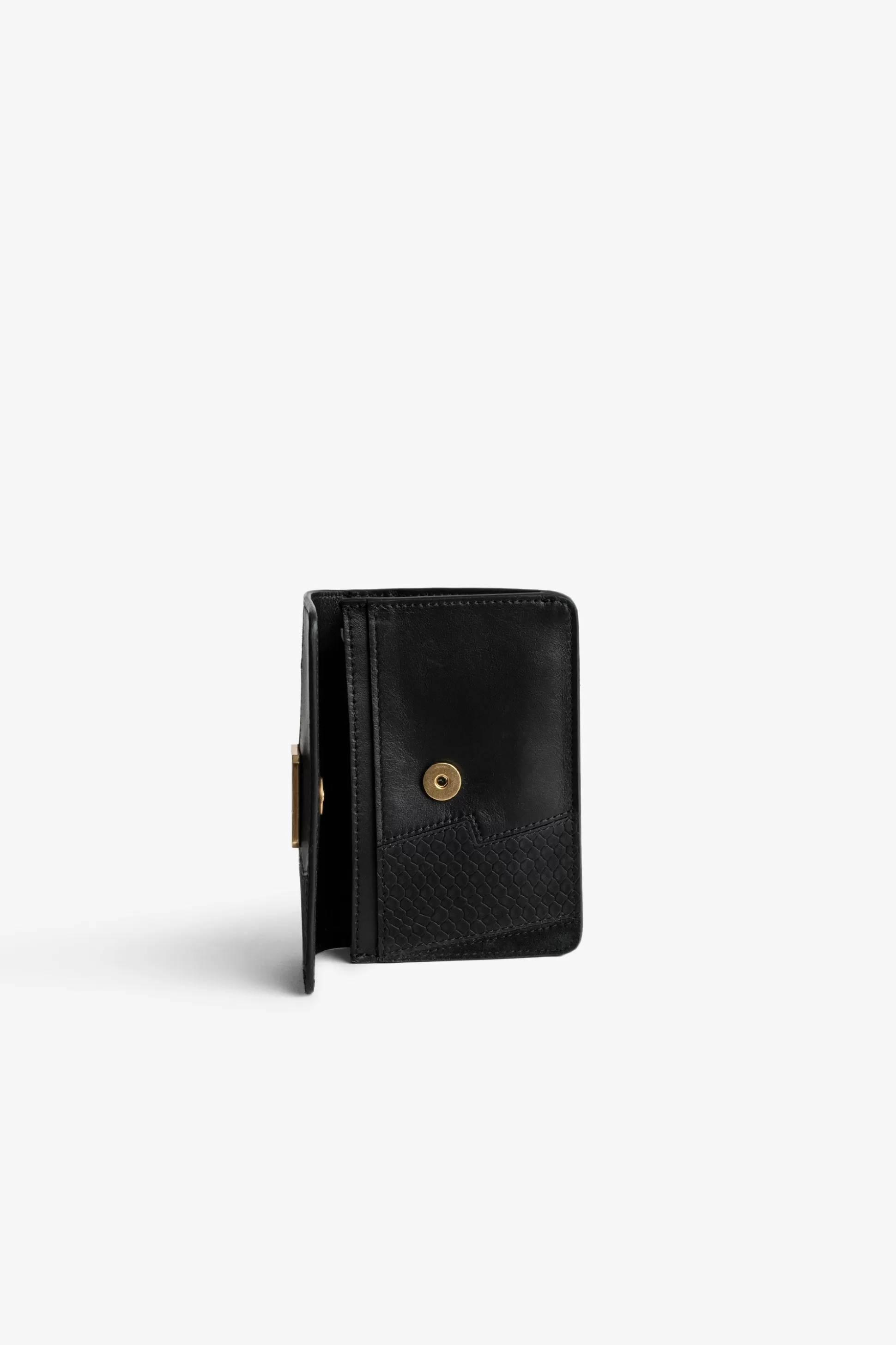 Portefeuille Femme Zadig&Voltaire En Cuir Noir – Patchwork En Python, Cuir Lisse Et Daim – Rabat – Bouton Pression – 2 E…