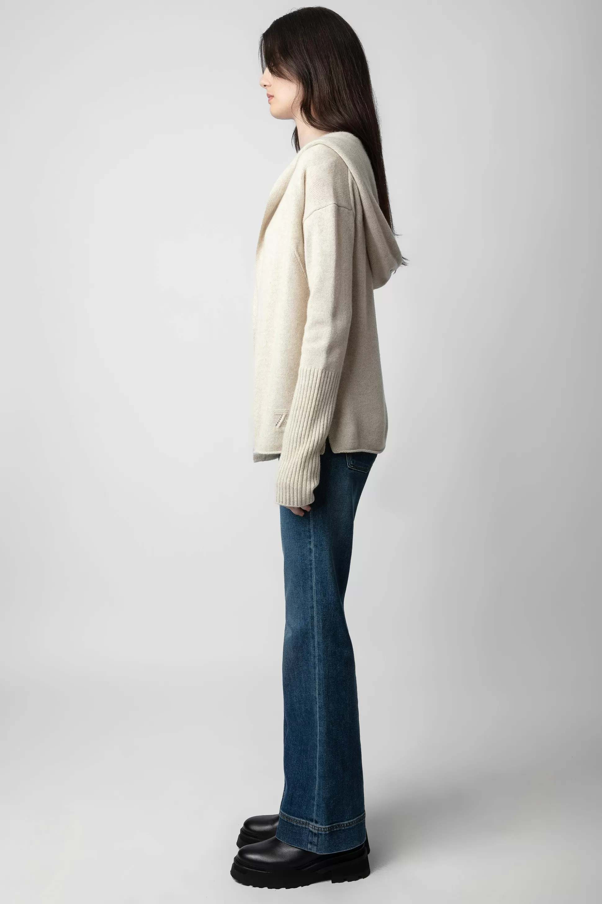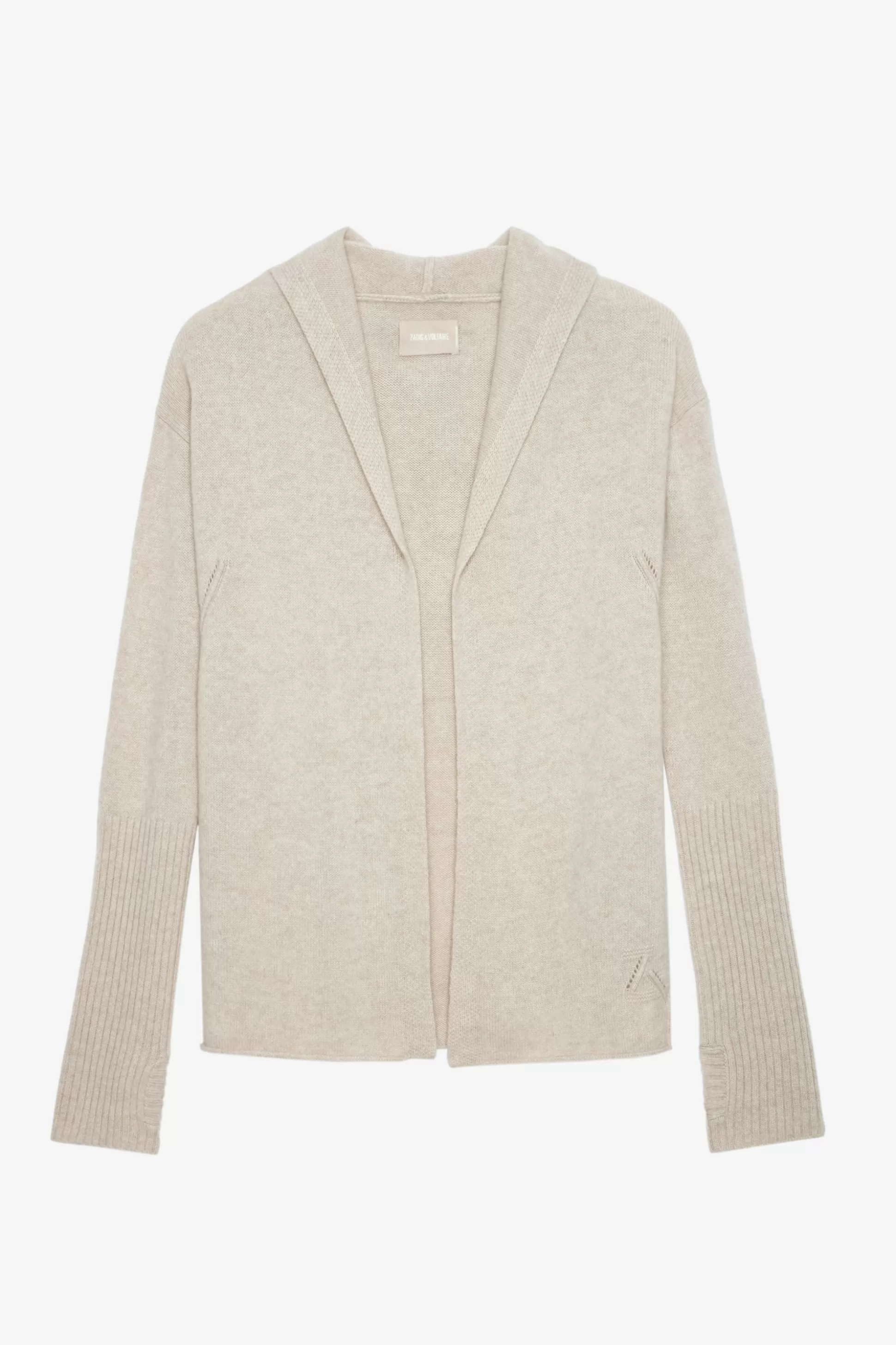 – Cardigan Femme En Cachemire Beige Mastic – Capuche – Manches Longues, Passe-Pouces, Bord-Côte Et Signature Zv En Poin…