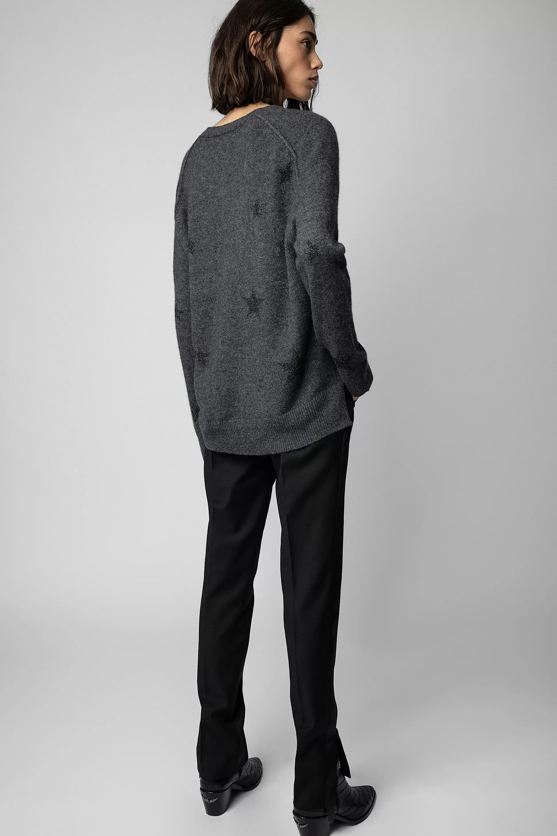 L’Incontournable Cardigan En Cachemire Mirka Se Décline Cette Saison En Gris Anthracite. Doté De Manches Longues Et D’Une Fermeture Boutonnée, Il Présente Des Motifs Étoiles En Strass Contrastés Sur Toute La Surface.