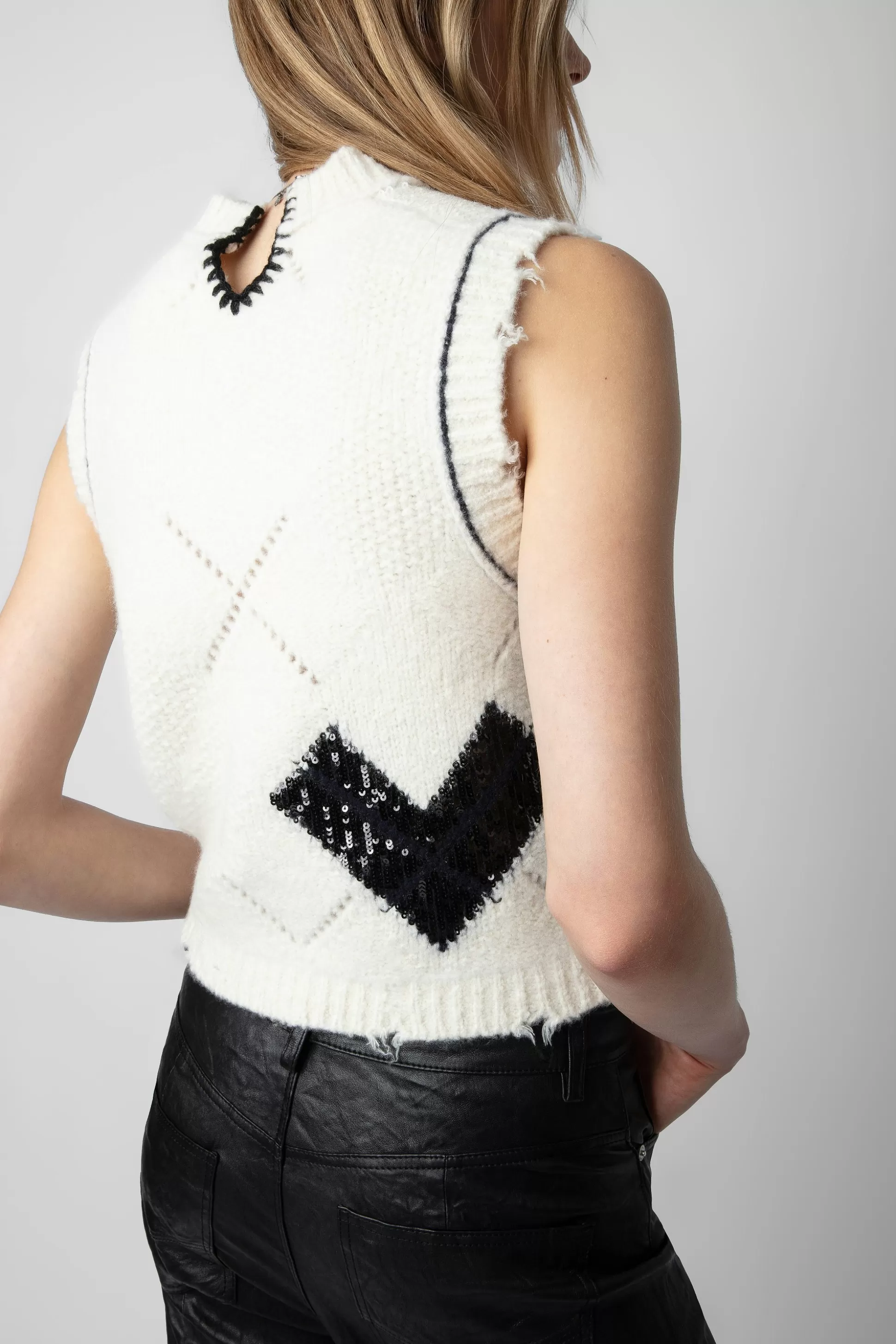 – Bordure Contrastée, Motifs Ajourés Et Coeur De Sequins Contrastés Au Dos
