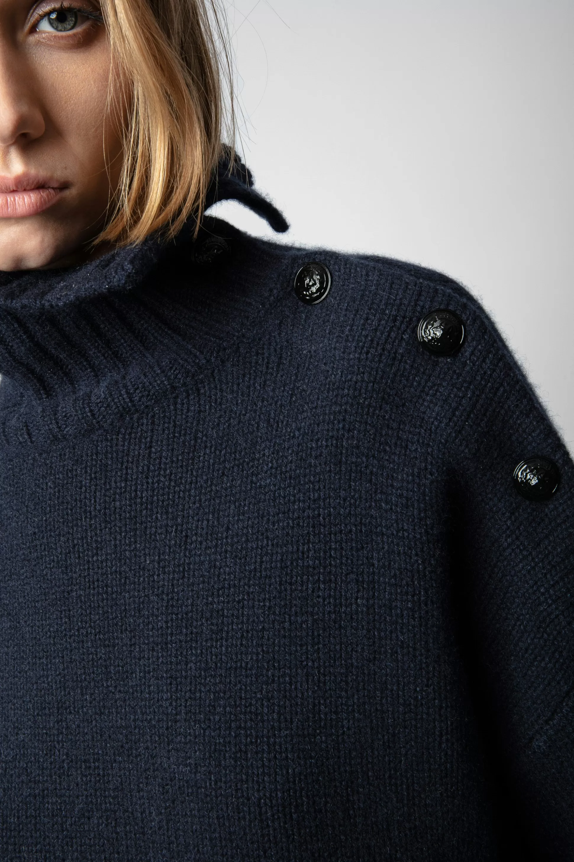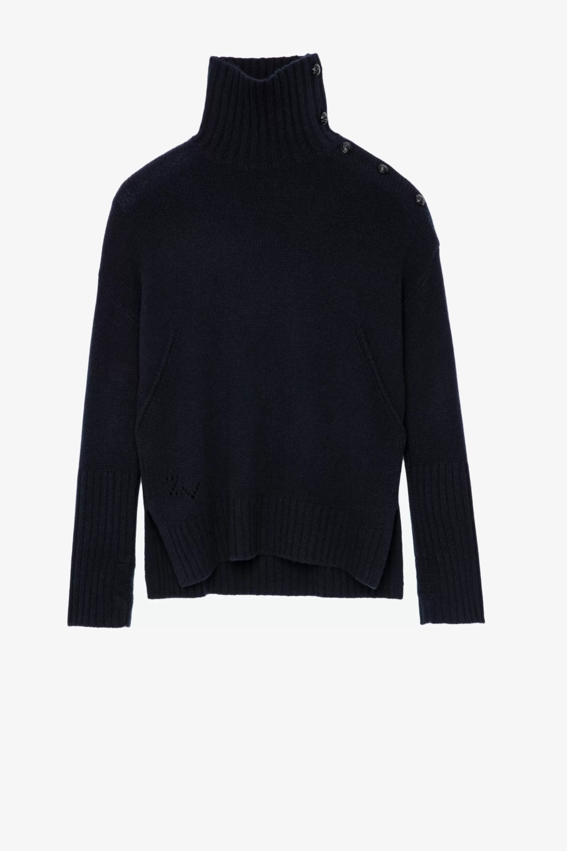Ce Pull En Cachemire Doux Et Luxueux, Pièce Iconique De La Collection Zadig&Voltaire, Possède Un Col Montant En Bord-Côte Et Des Boutons Sur L’Épaule.