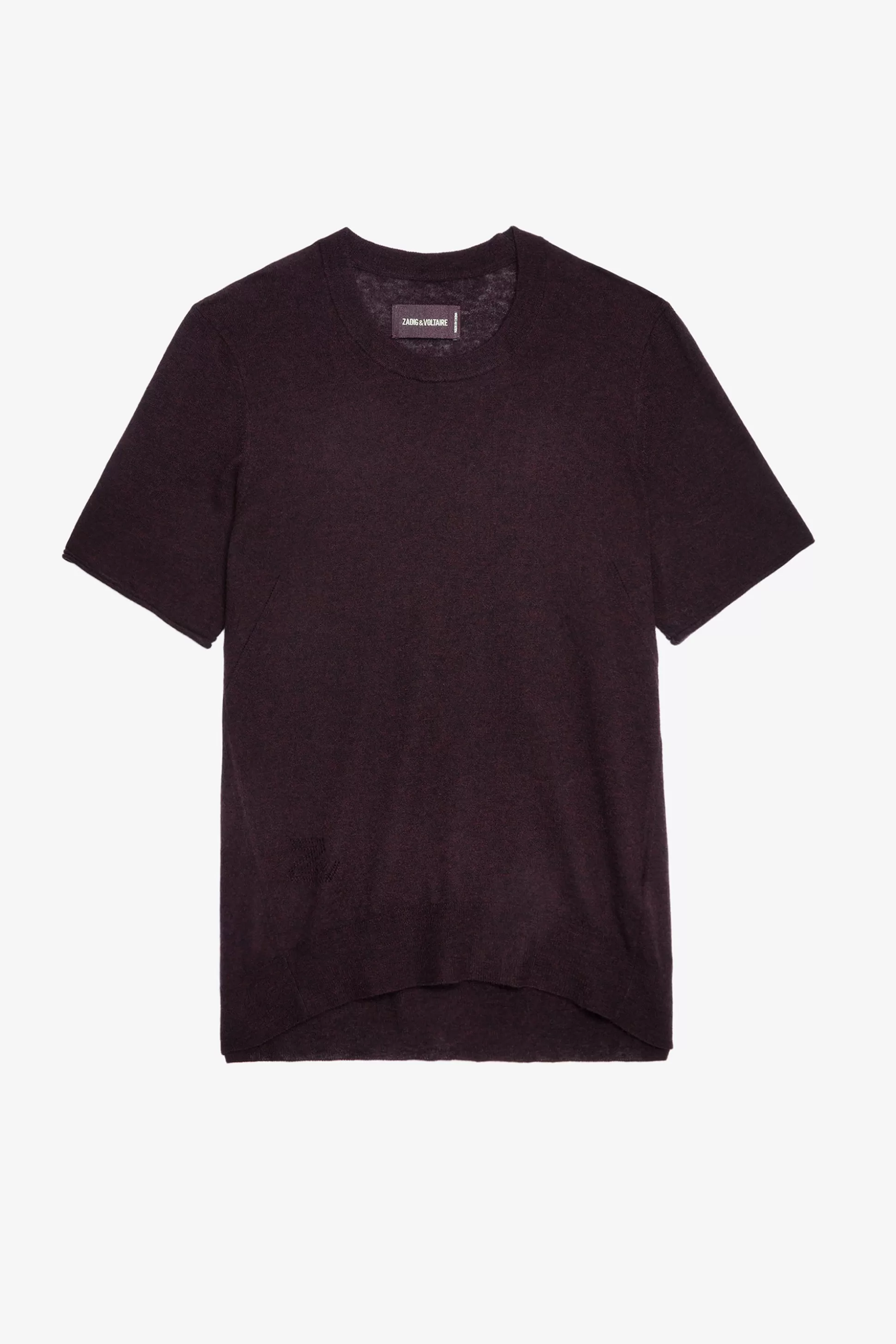 Pull Femme Cachemire Plumes Marron Chocolat – Encolure Ronde Et Finitions Bords-Côtes – Manches Courtes Et Signature Zv…
