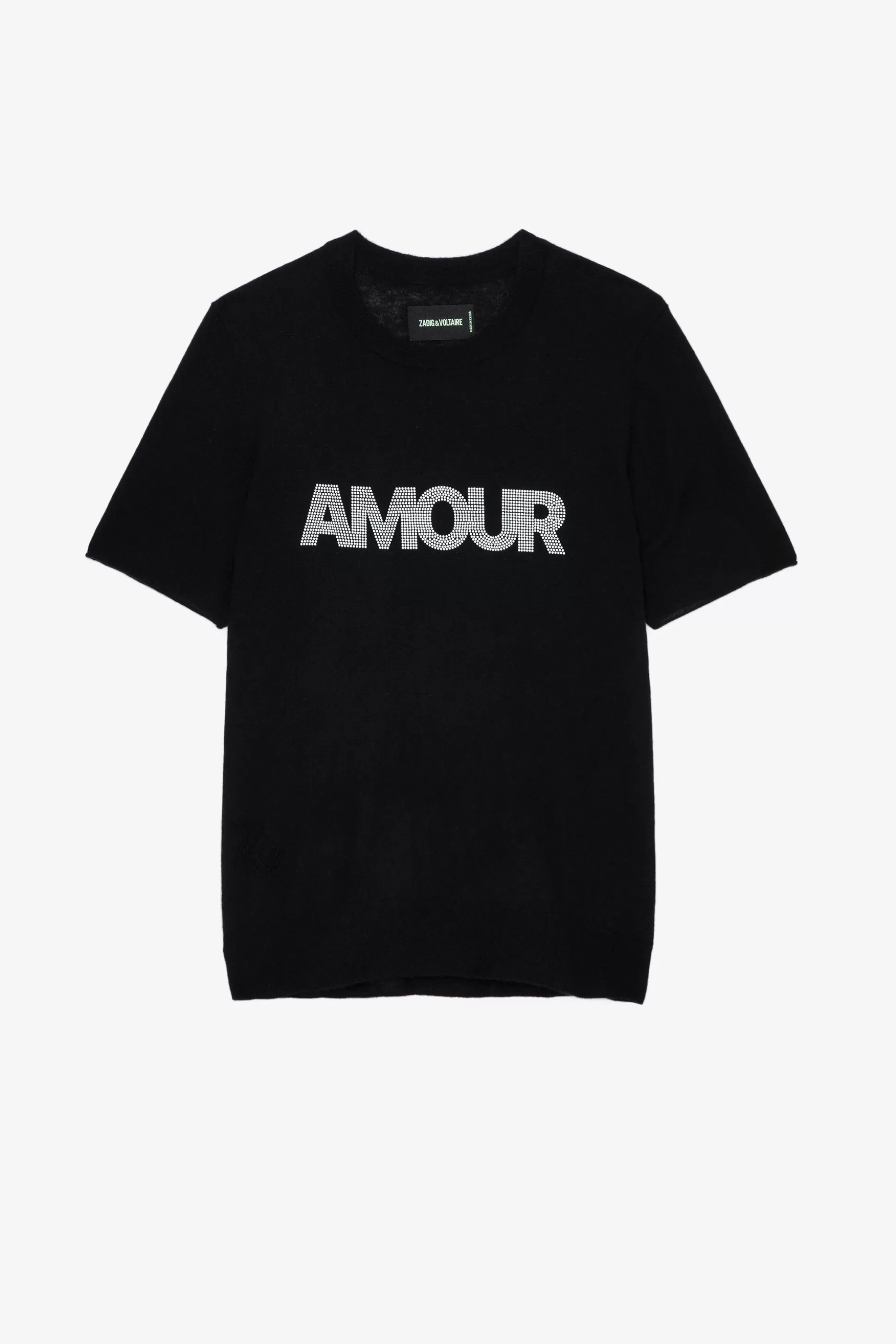 Ce Pull À Manches Courtes 100% Cachemire Allie Douceur Et Confort Et Arbore Le Slogan « Amour ».- Pull Noir En Cachem…
