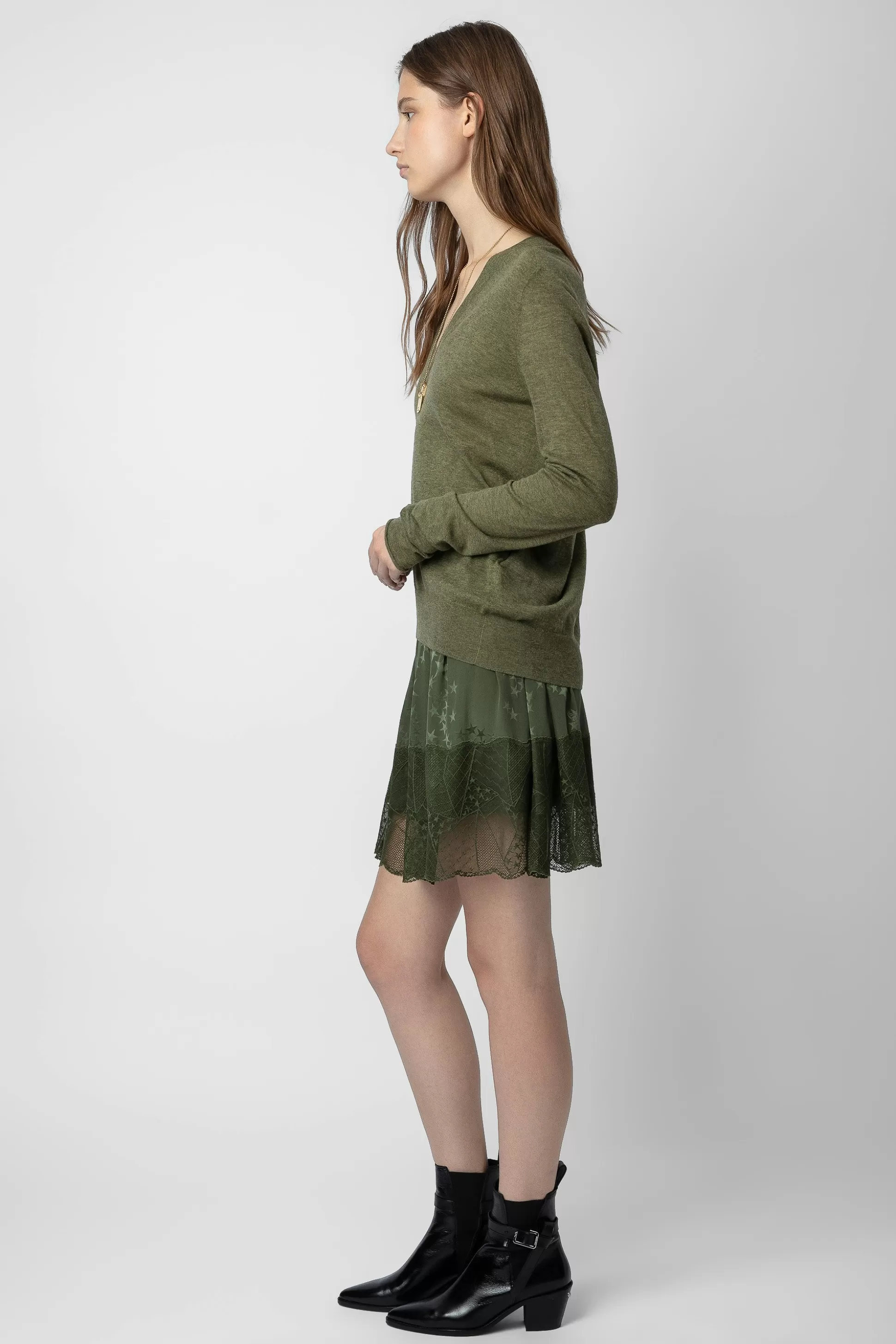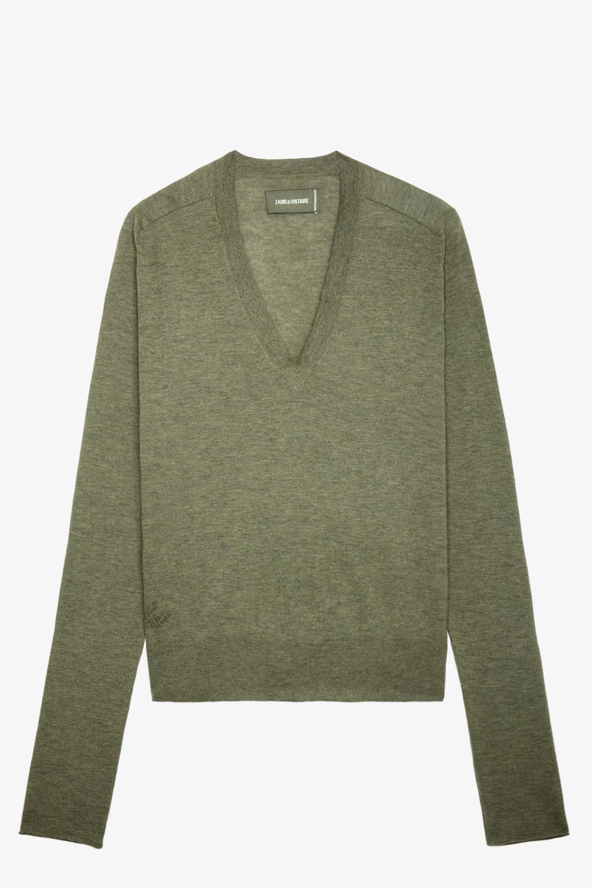 Pull Femme En Cachemire Plumes Kaki Dark Olive