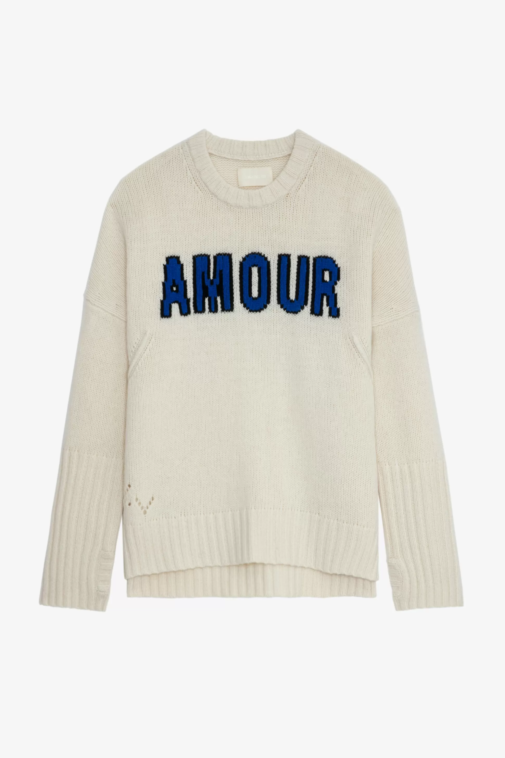 – Slogan « Amour » En Jacquard Intarsia Et Signature Zv En Pointelle