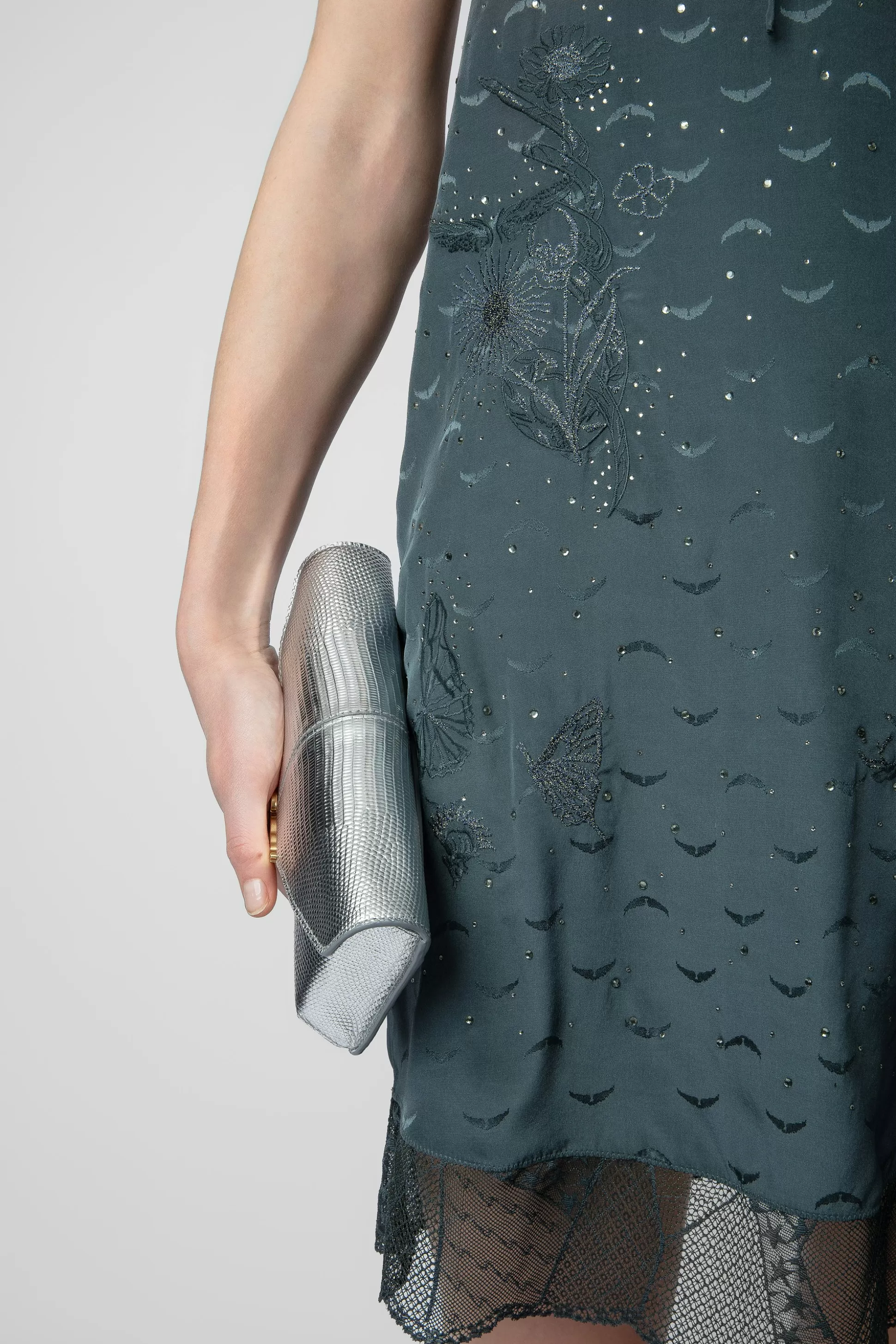 Mini-Robe Fluide Style Lingerie Femme Nori Grise – Soie Avec Ailes En Jacquard – Imprimé Conçu Par Holly Biörklund, A…