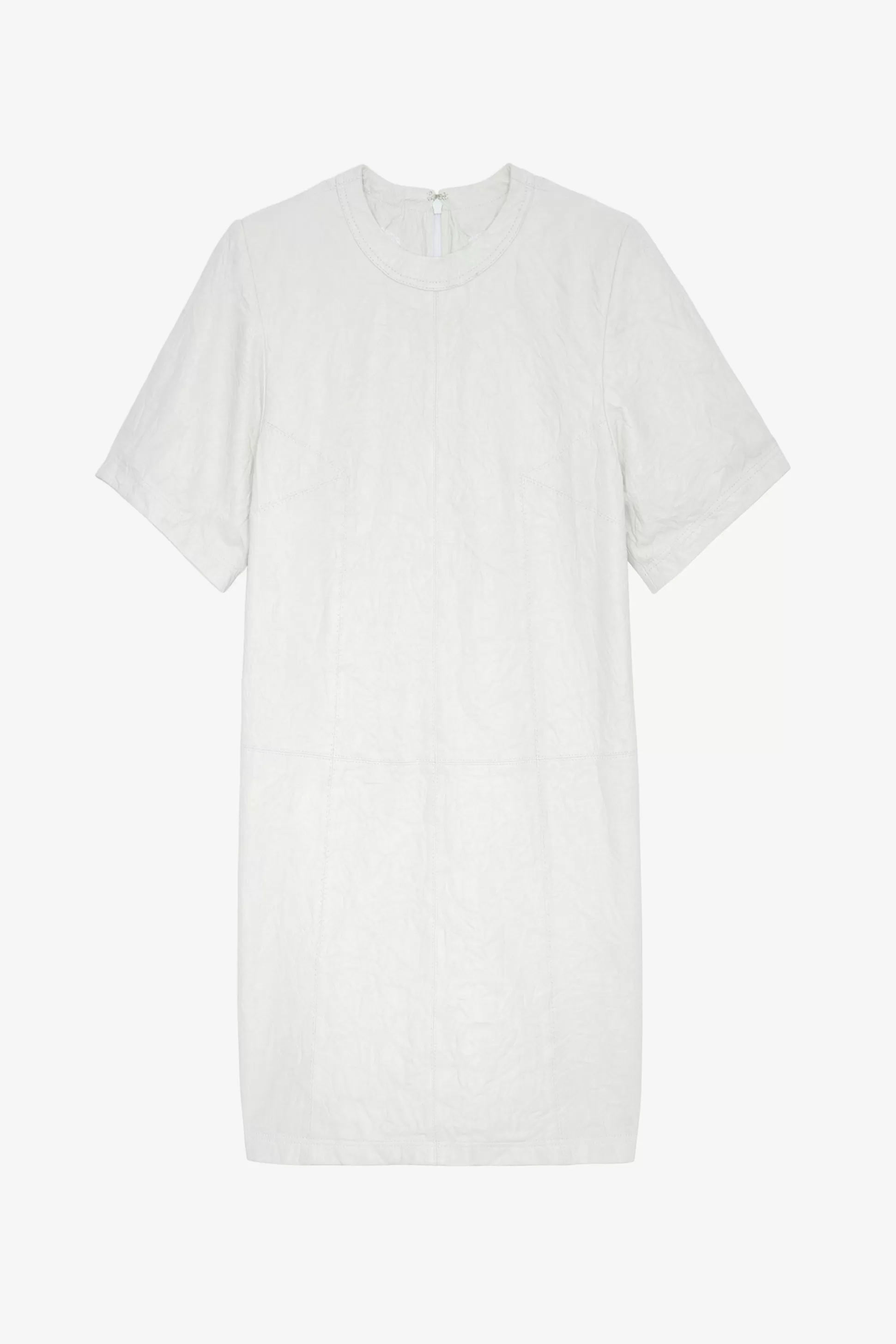 – Robe Courte Femme Judo En Cuir Froissé Blanc – Encolure Ronde Et Fermeture Zippée Au Dos – Manches Courtes – Détail…