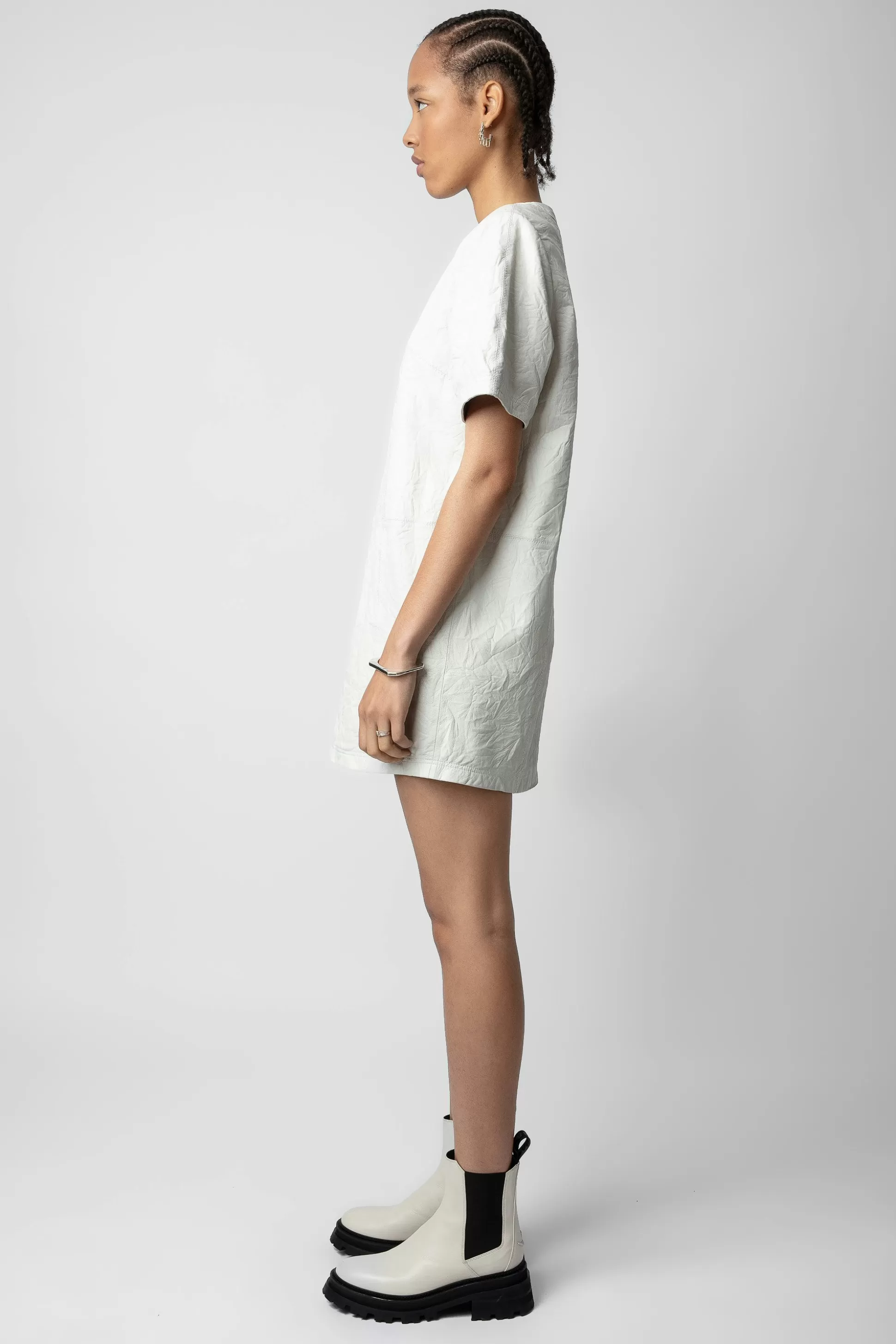 – Robe Courte Femme Judo En Cuir Froissé Blanc