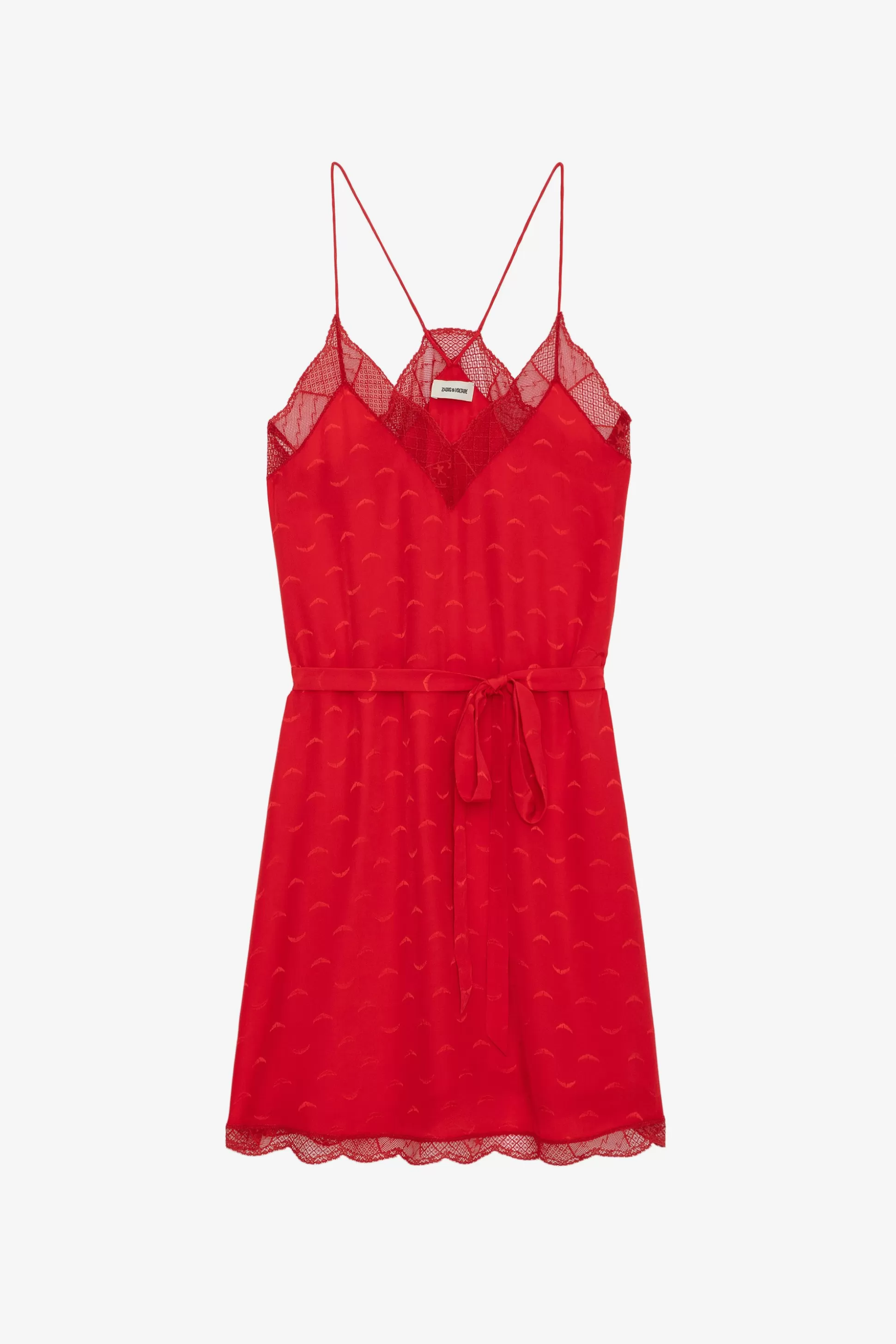 – Robe Courte Femme En Soie Rouge Japon – Ailes En Jacquard Et Dentelle À Motifs Contrastés – Encolure Droite Et Fines…
