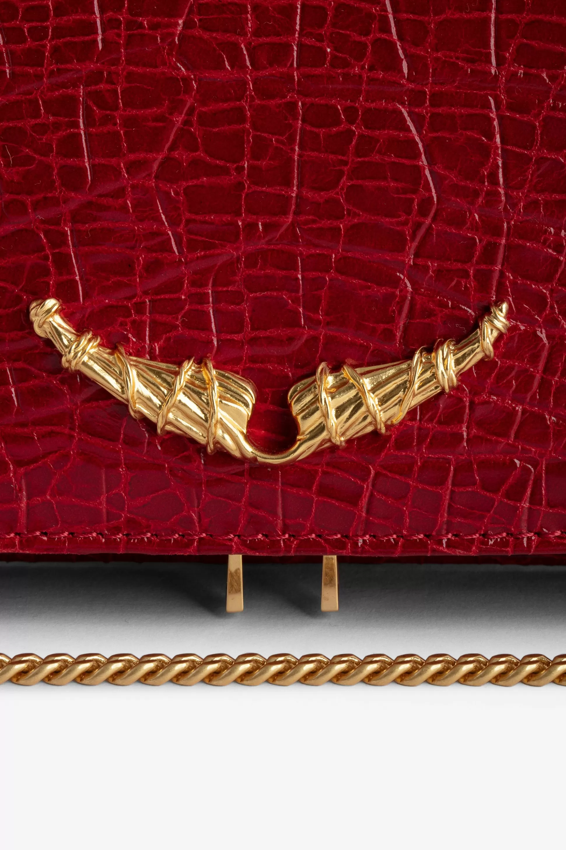 – Rock Power Croco Rouge Femme -Pochette En Cuir Embossé