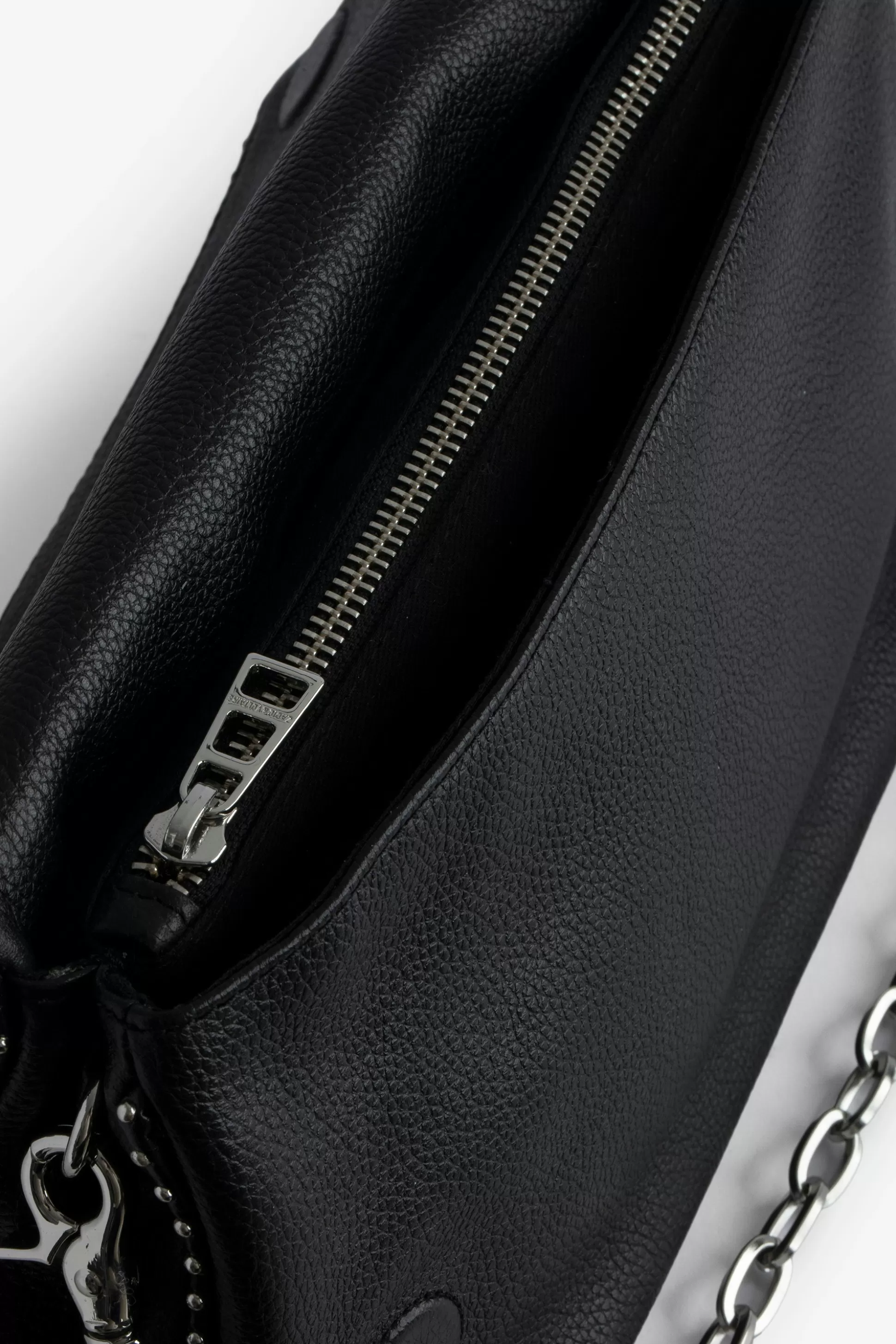 Sac Femme Rocky Iconique En Cuir Grainé Noir Orné De Clous Argentés