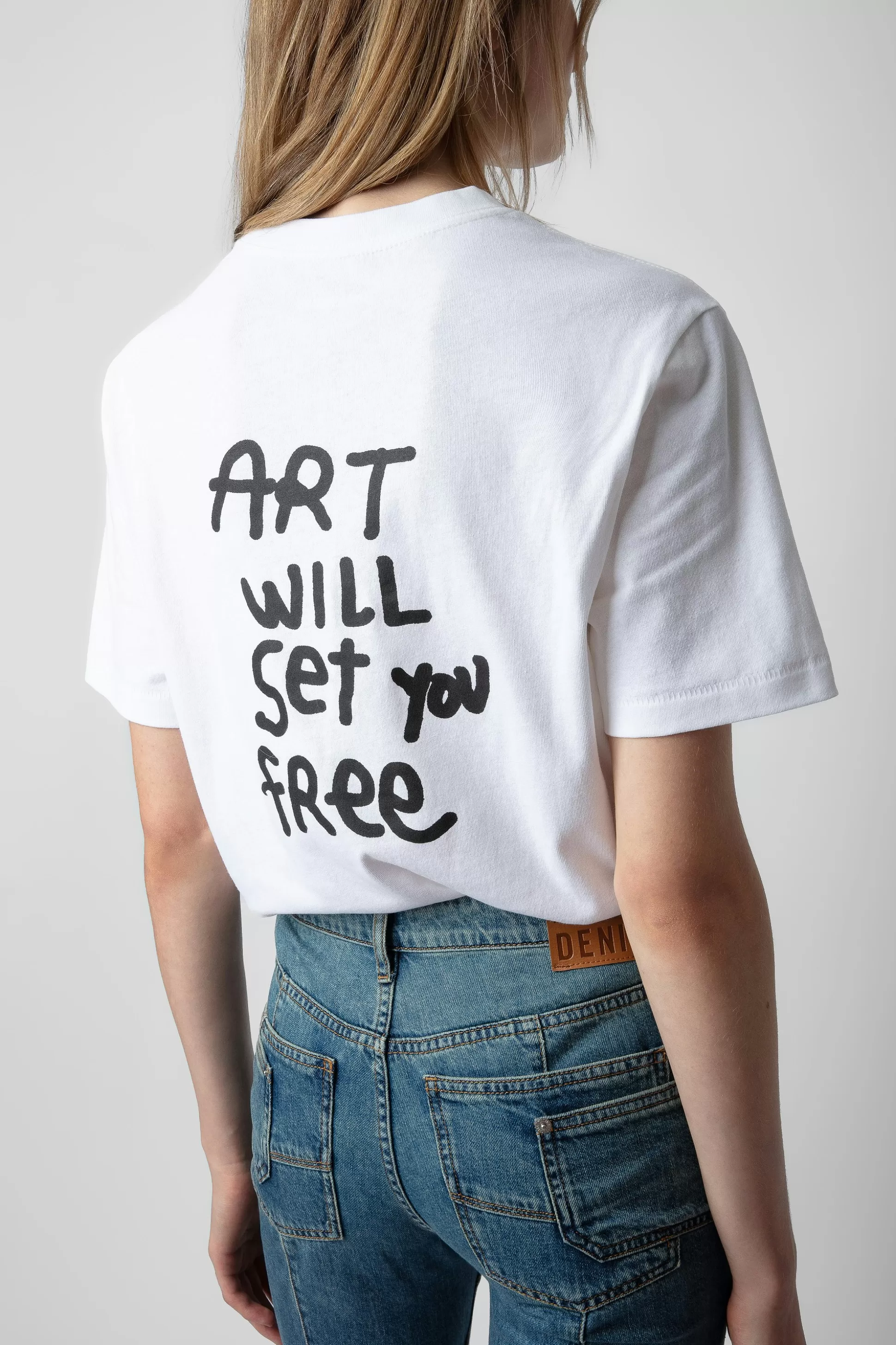 – Motifs Diable Ornés De Strass Sur Le Devant Et Slogan « Art Will Save Your World » Au Dos