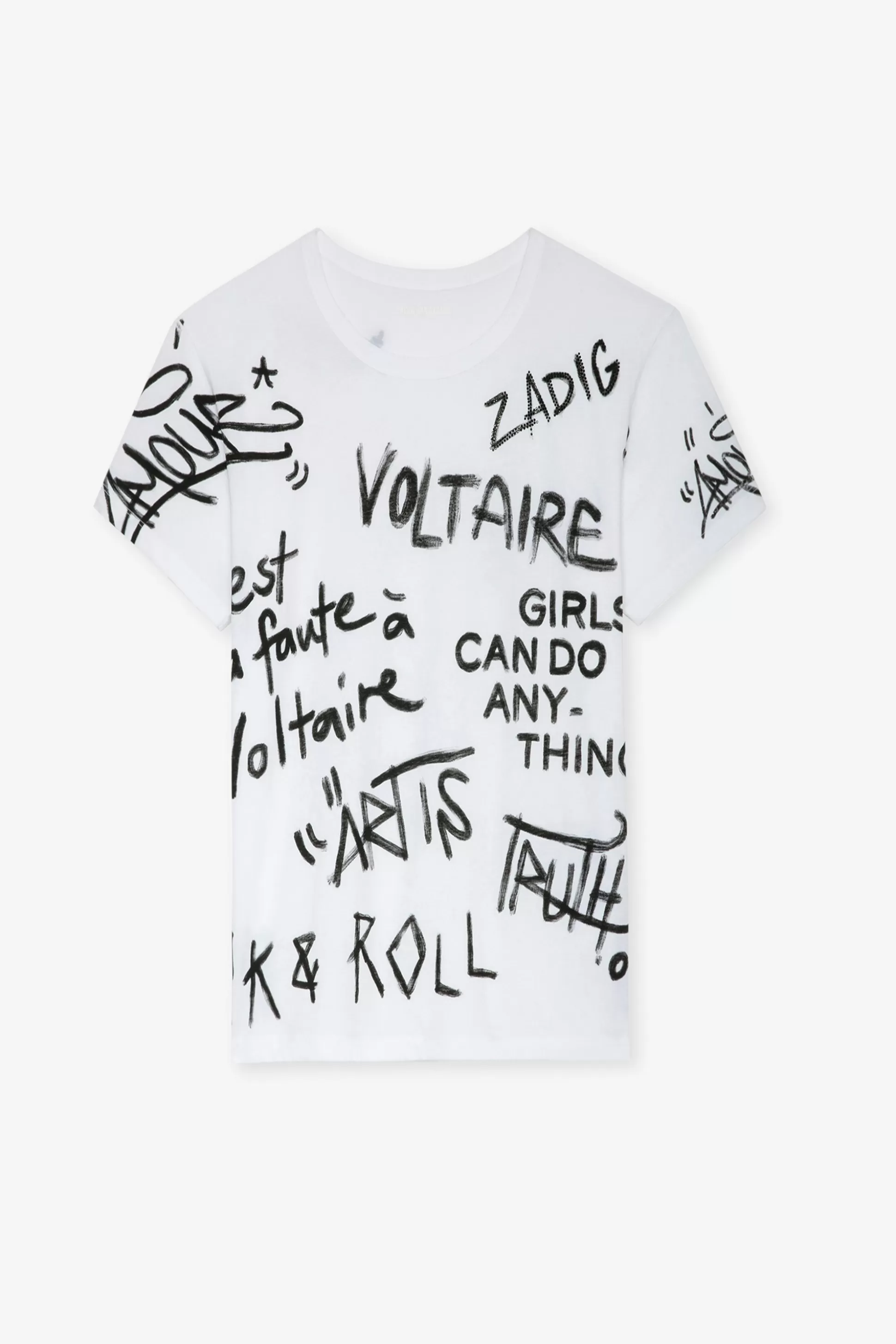 – T-Shirt Femme Blanc En Coton – Tags Manifeste Zadig&Voltaire Imprimés Devant Et Dos – Col Rond Et Manches Courtes – F…