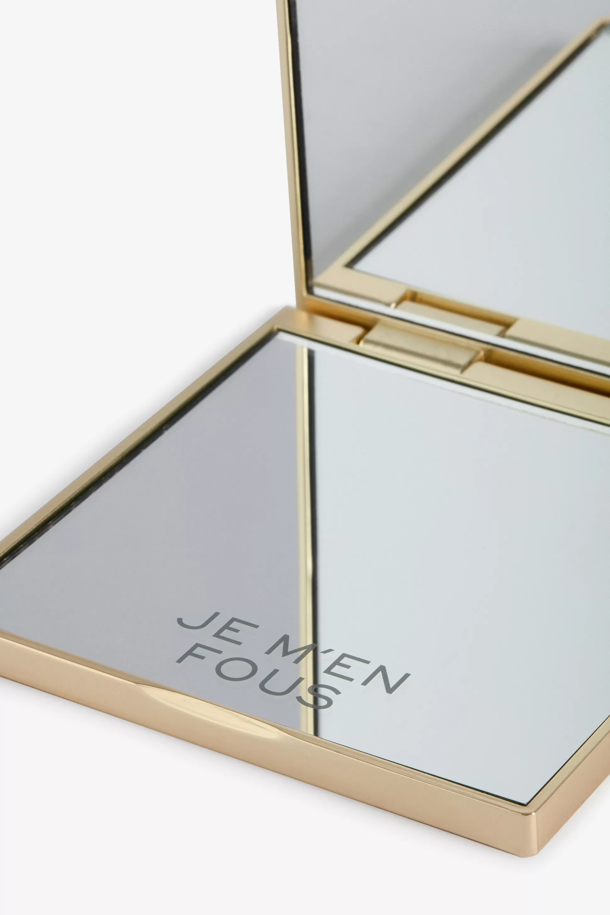– Miroir De Poche Double Face En Métal Vieil Or Avec Miroir Standard Au Dessus Et Miroir Grossissant En Dessous