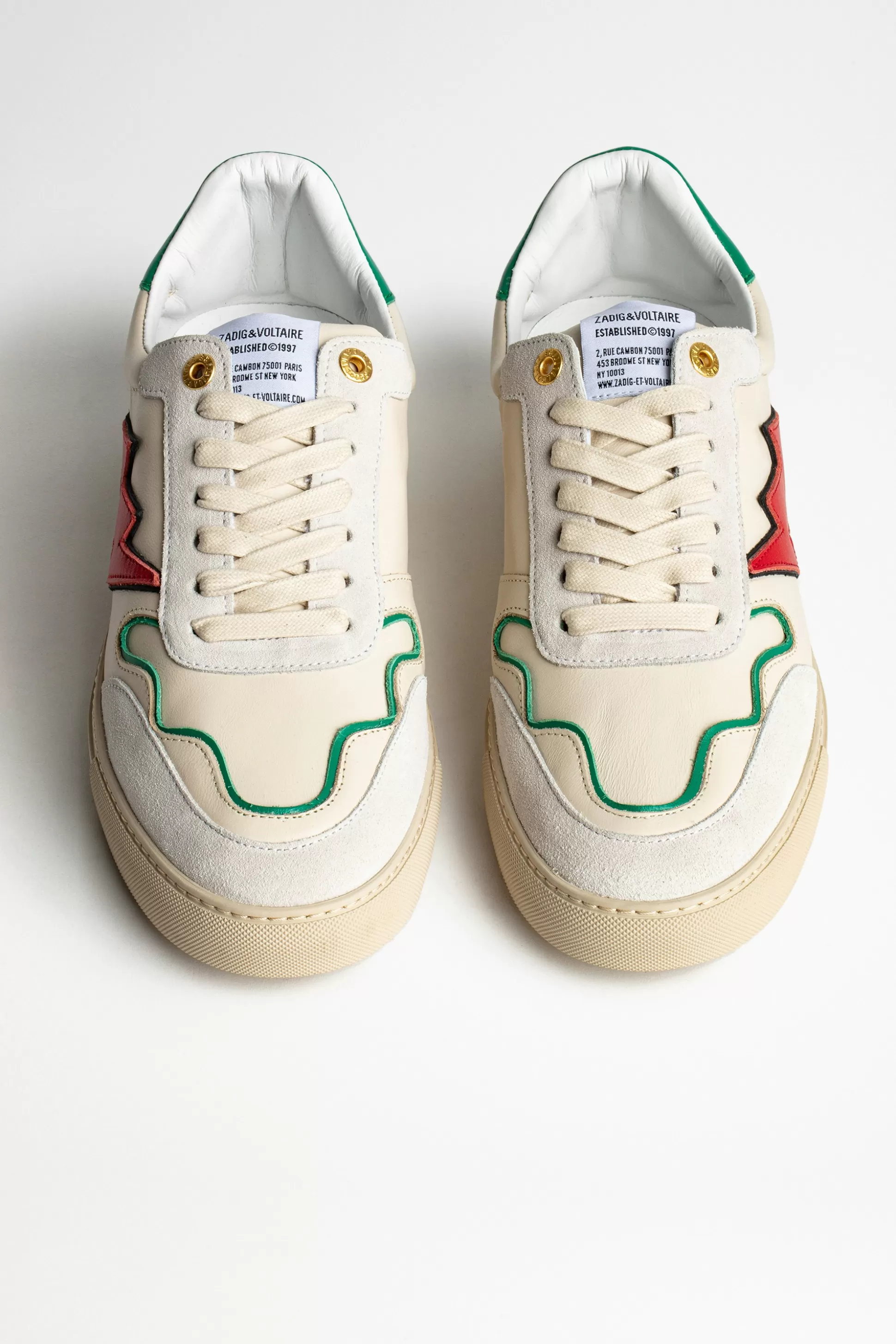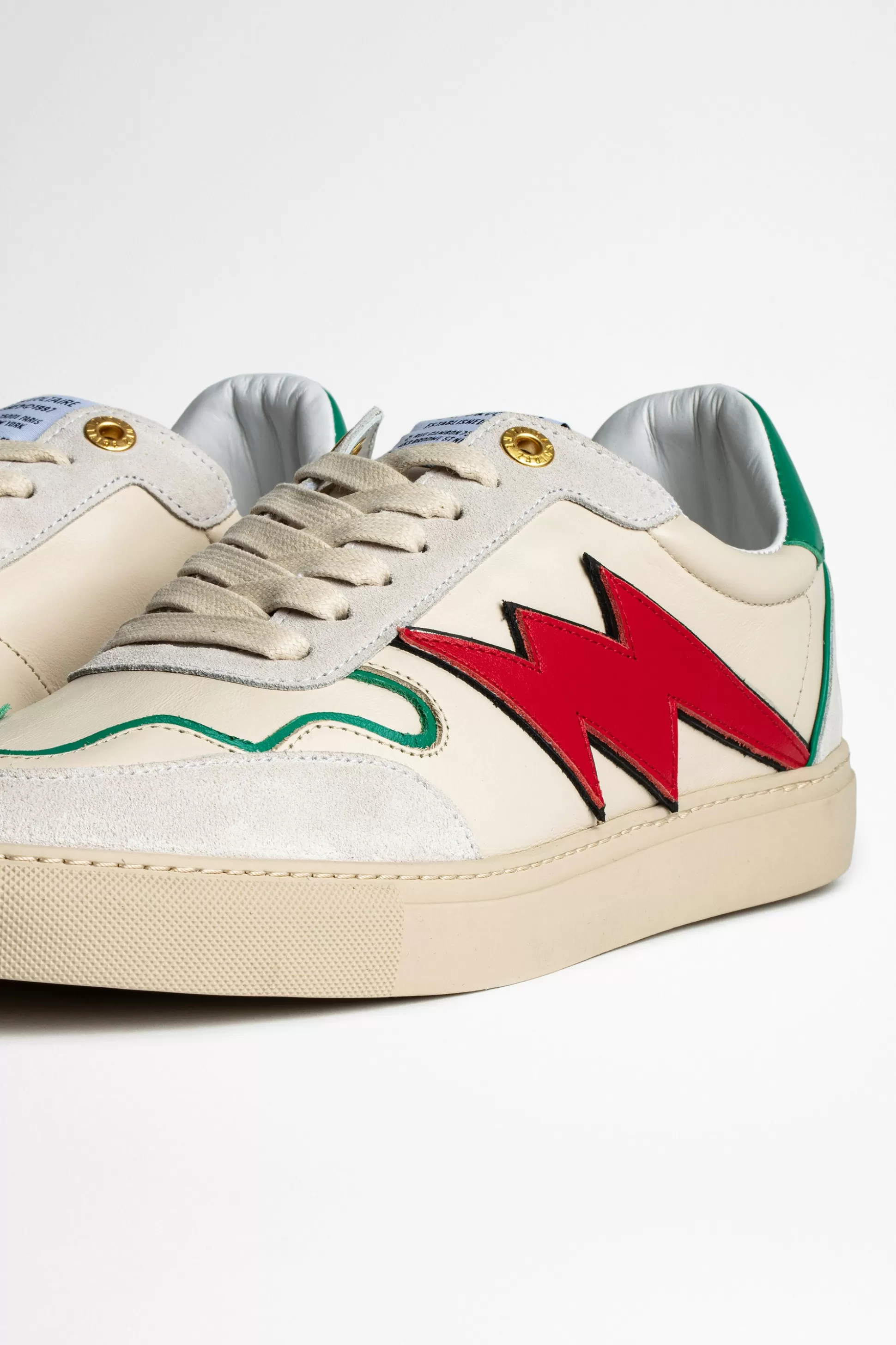 -Baskets Homme Zadig&Voltaire- Cuir Blanc-Empiècement Éclair Contrasté- Passepoil Contrasté- Languette Imprimée-Sem…