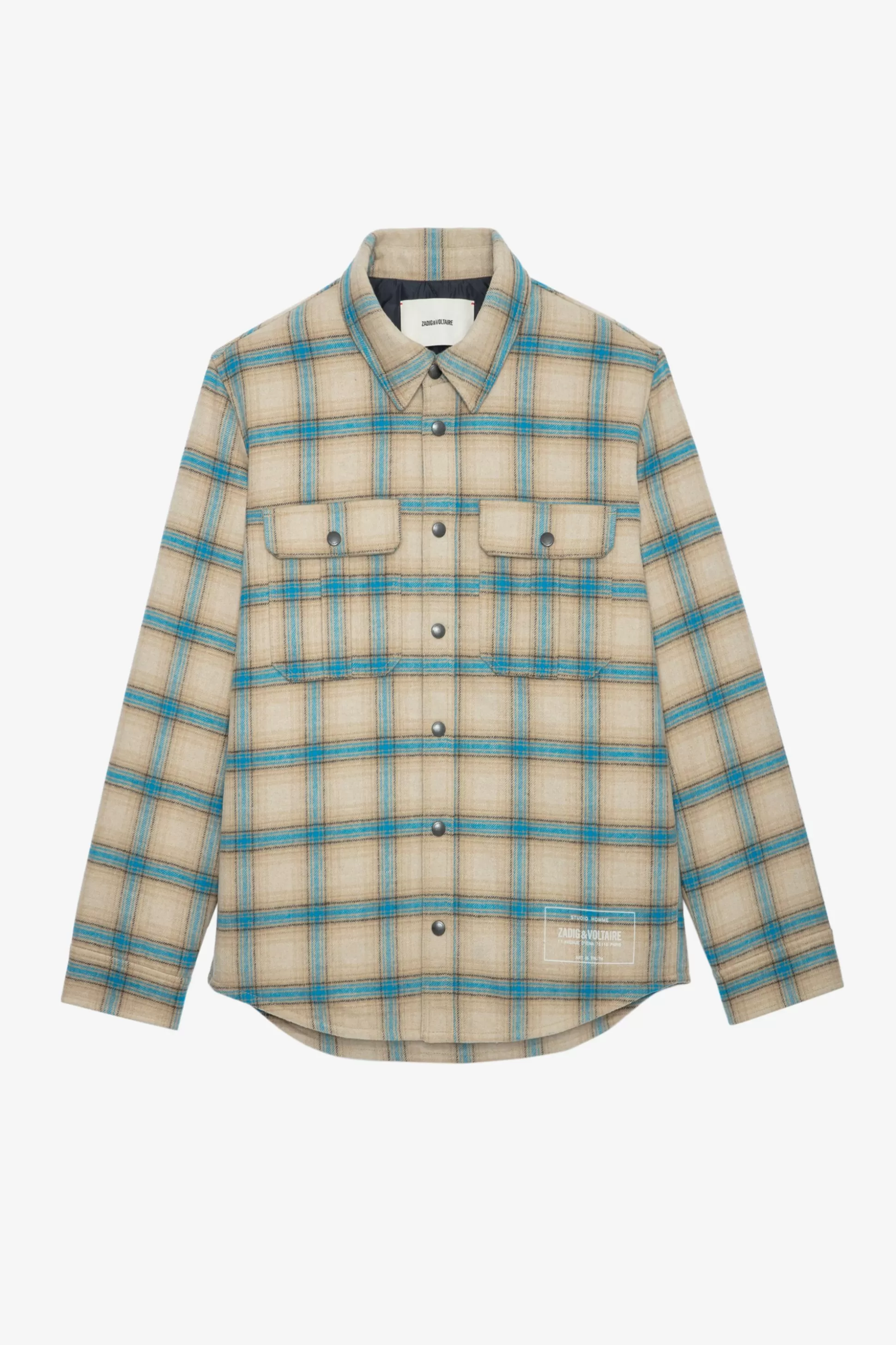 Surchemise Homme Ficelle Beige- Imprimé À Carreaux – Signature « Z.Voltaire » Sur La Poitrine Et Imprimé Insigne De…