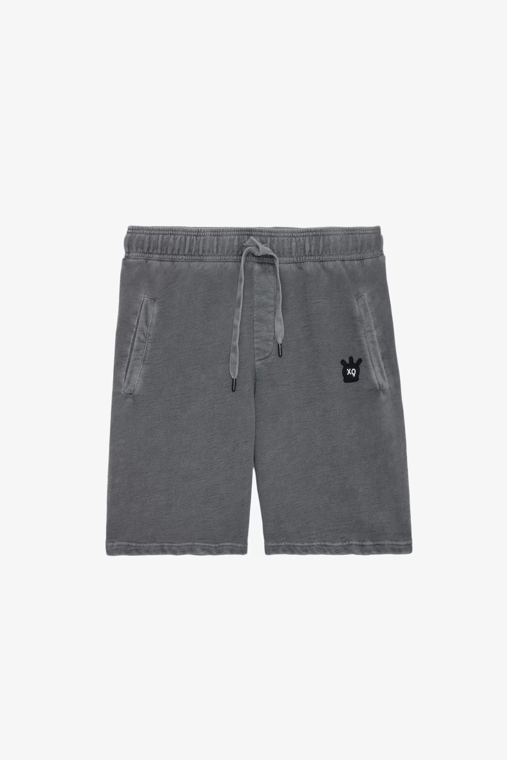 – Short Homme En Coton Anthracite – Cordon De Serrage À La Taille Et Patch Skull Xo Devant – 2 Poches Latérales Et 1 P…