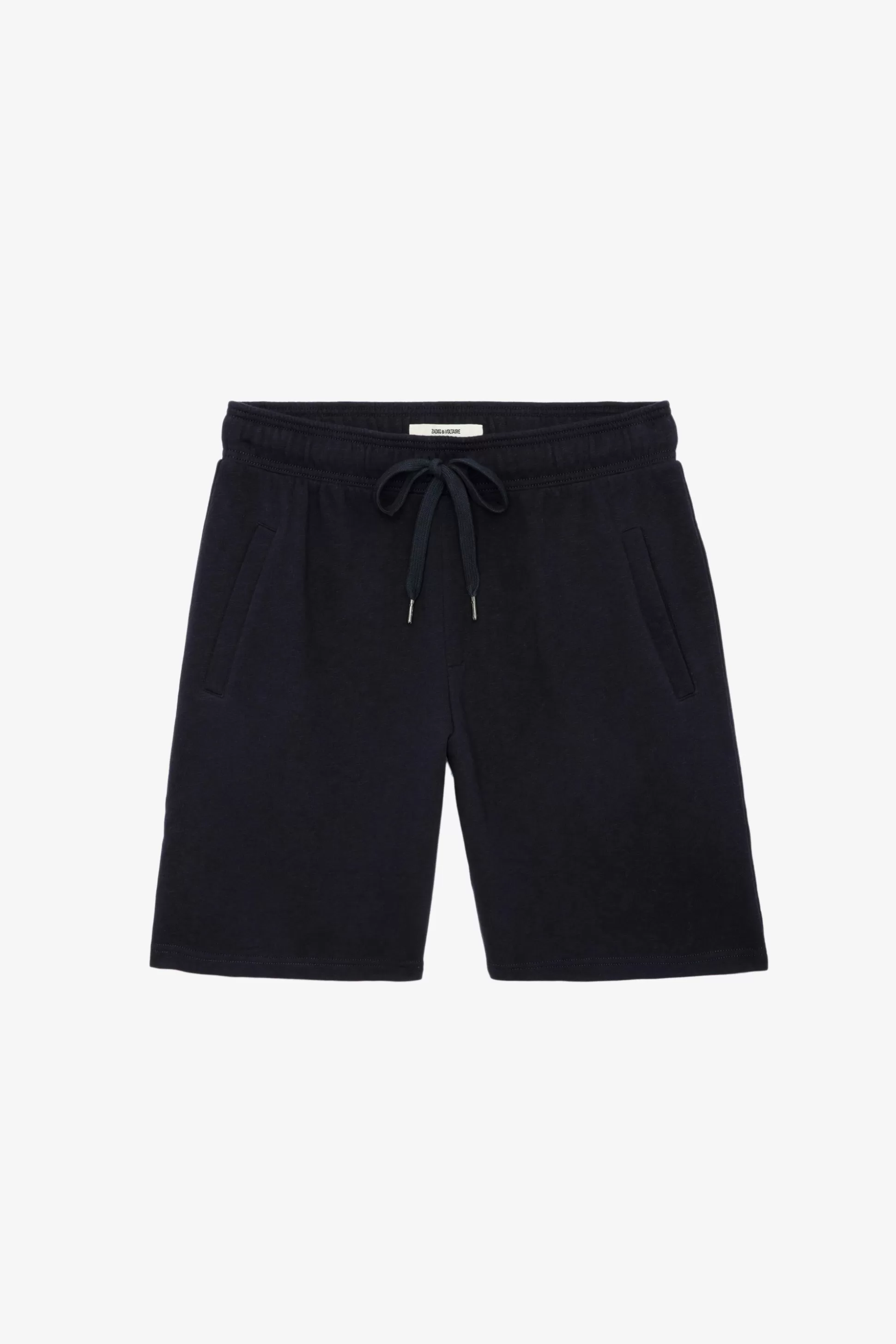 Short Homme Encre Bleu Marine En Coton – Cordon De Serrage À La Taille – 2 Poches Latérales Et 1 Poche Arrière Avec P…