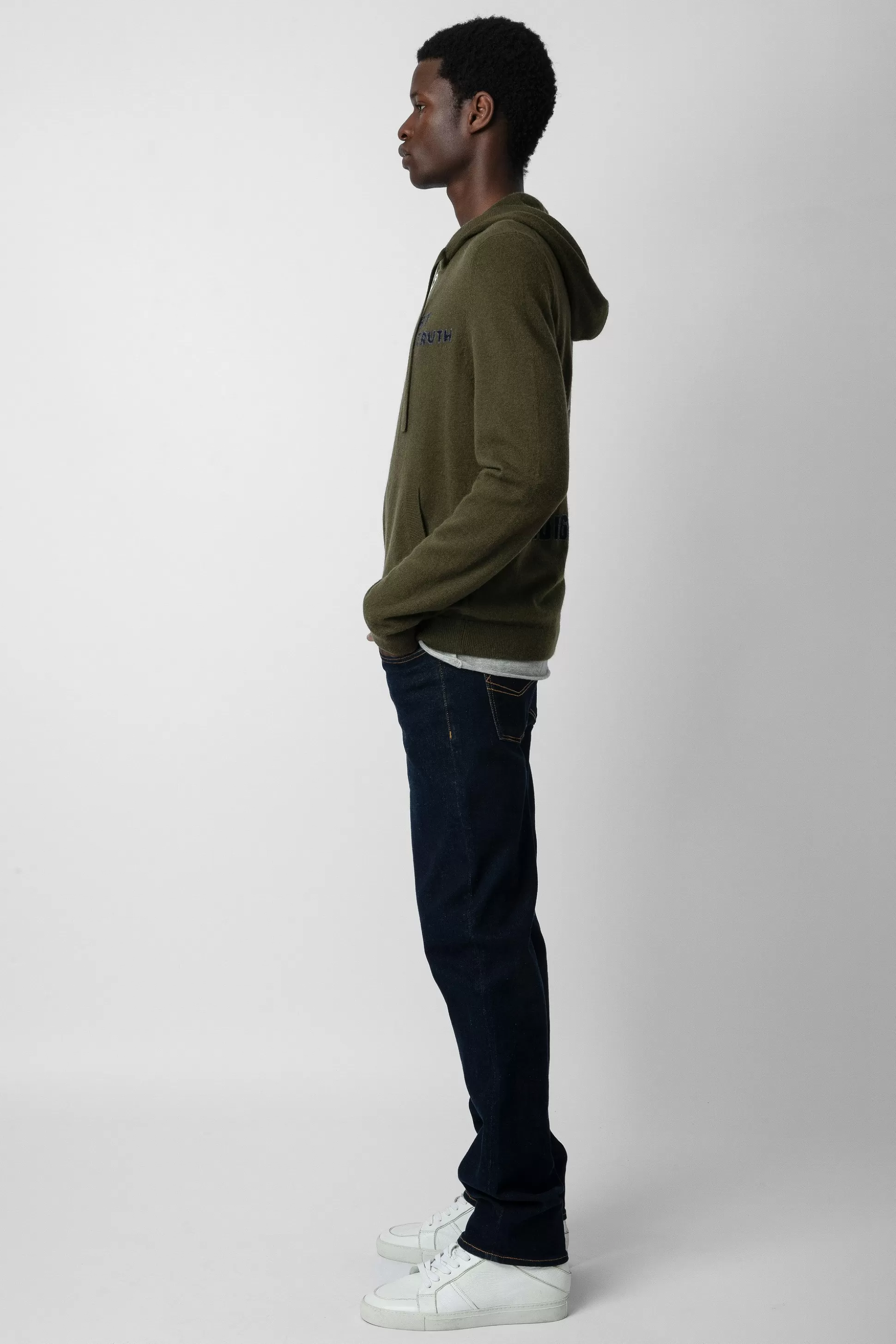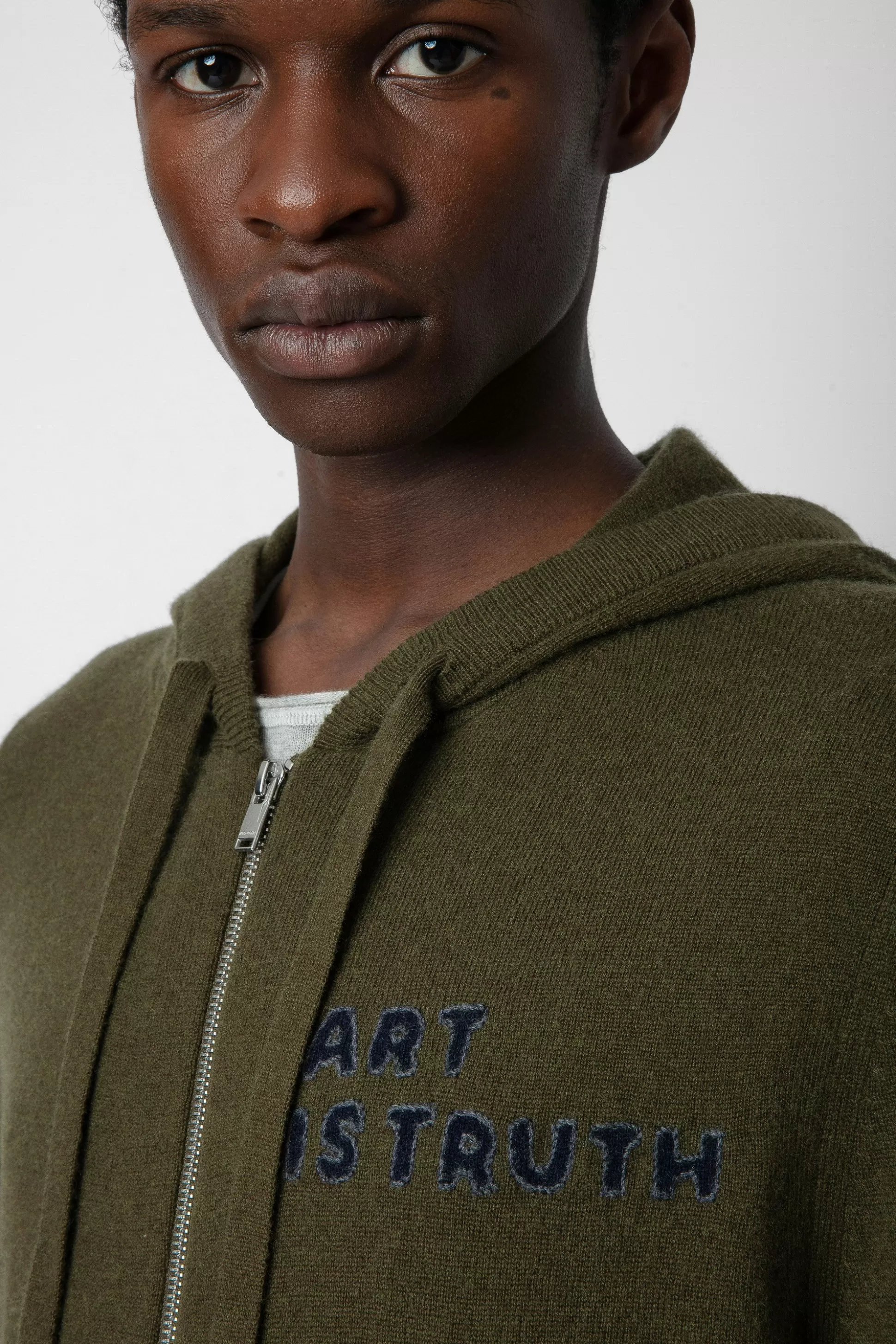 – Cardigan Homme En Maille Kaki Cypres – Capuche Avec Cordon De Serrage Et Fermeture Zippée – Slogan « Art Is Truth »…