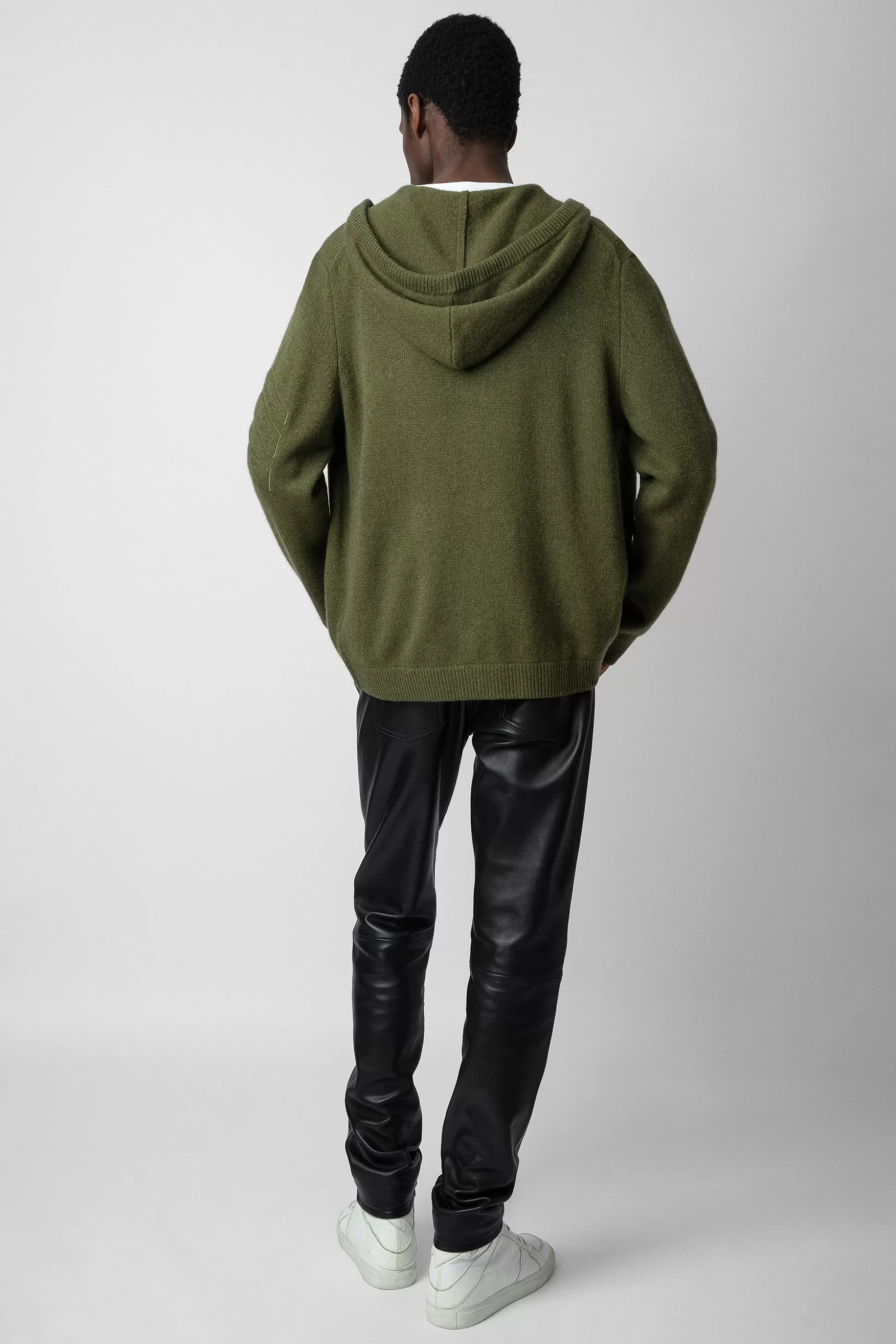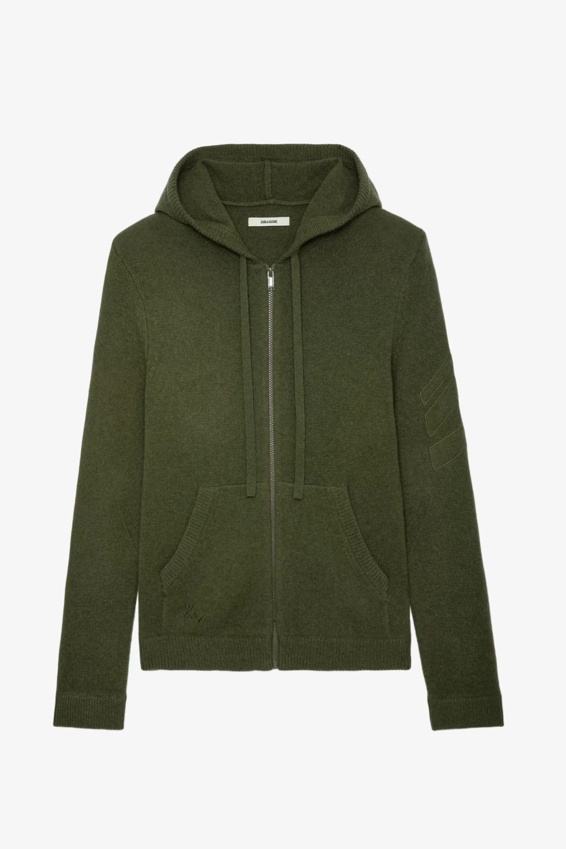 Cardigan Homme En Cachemire Kaki Dark Olive – Capuche Avec Cordon De Serrage Et Fermeture Zippée – Flèches En Jacquard…
