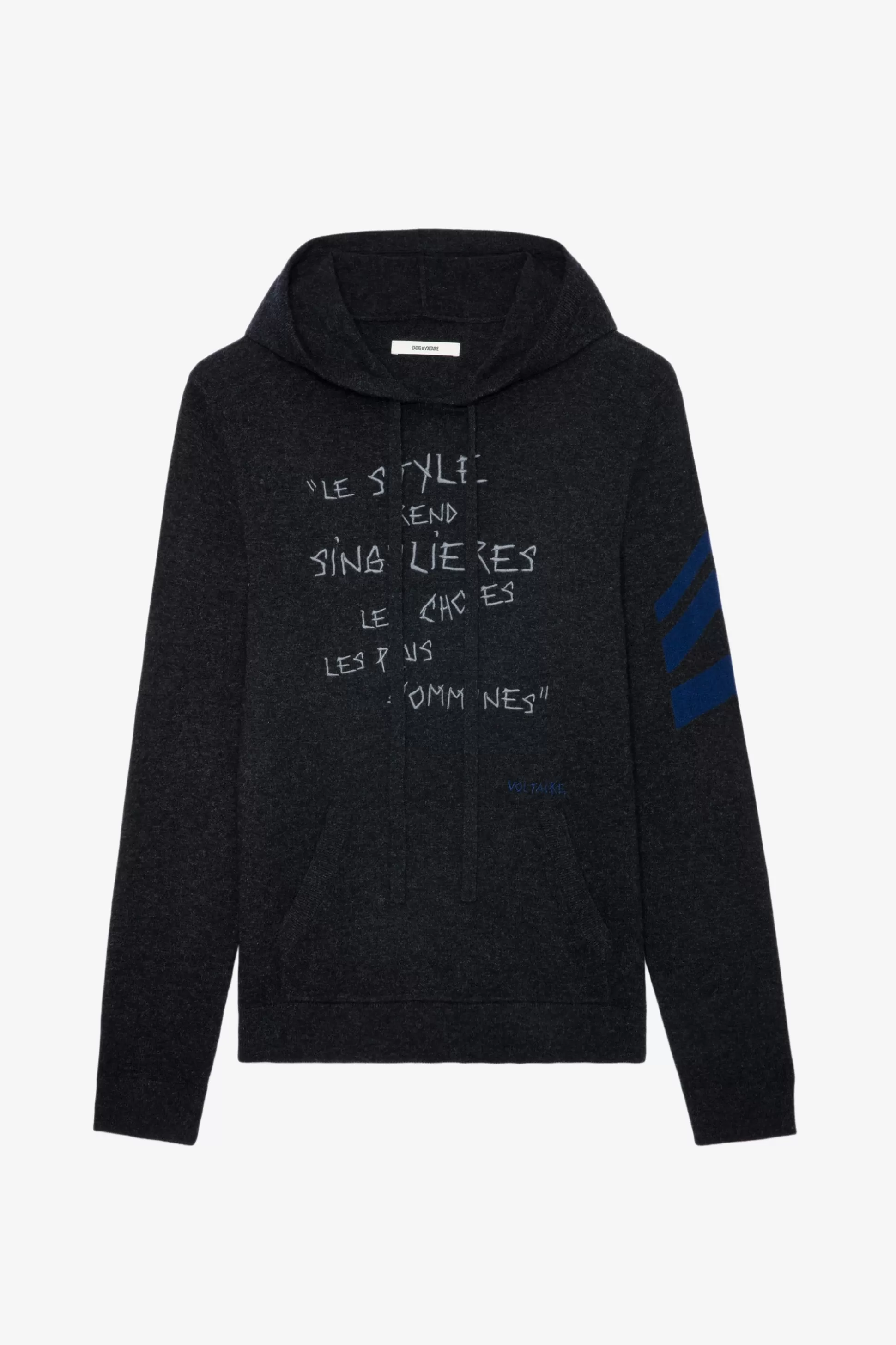 Pull Homme En Maille Gris Anthracite – Capuche Et Poche Avant Avec Cordon De Serrage – Slogan « Le Style Rend Singuliè…