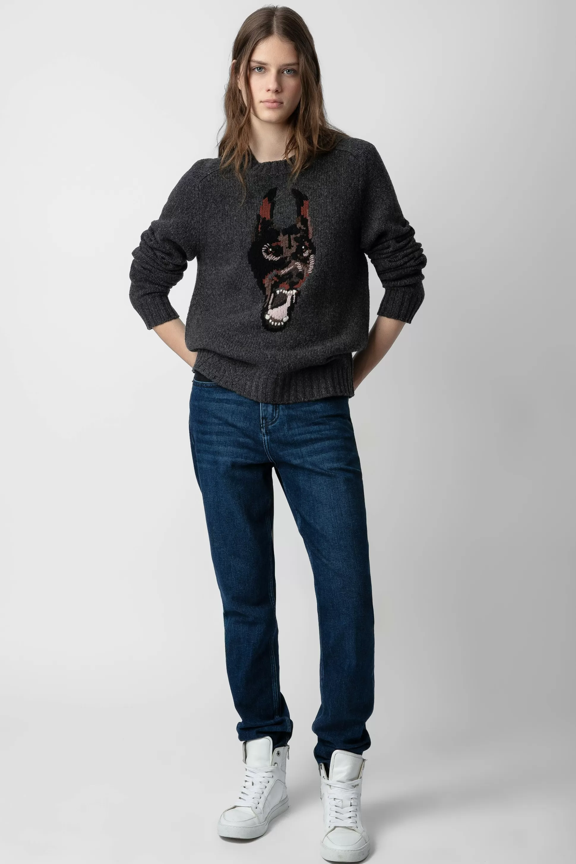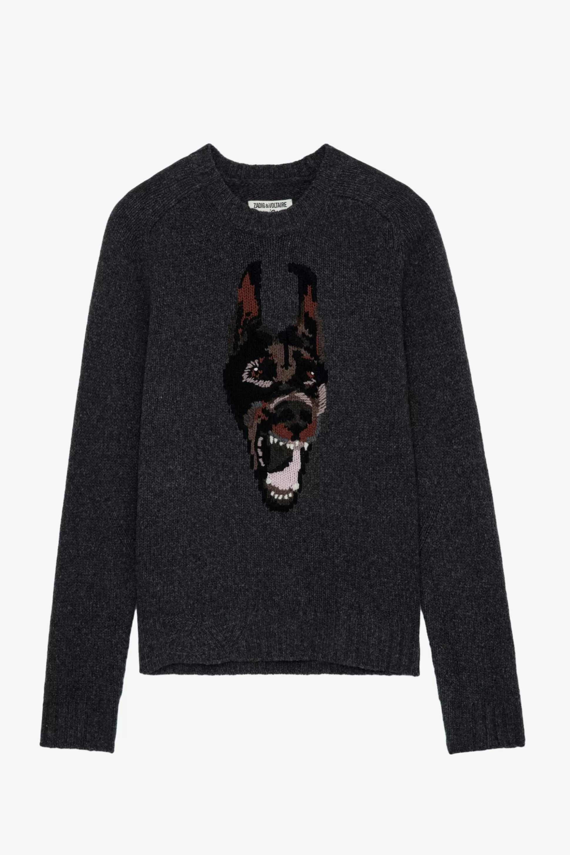 – Motif Doberman En Jacquard Intarsia Et Signature Pointelle Zv Sur Le Devant