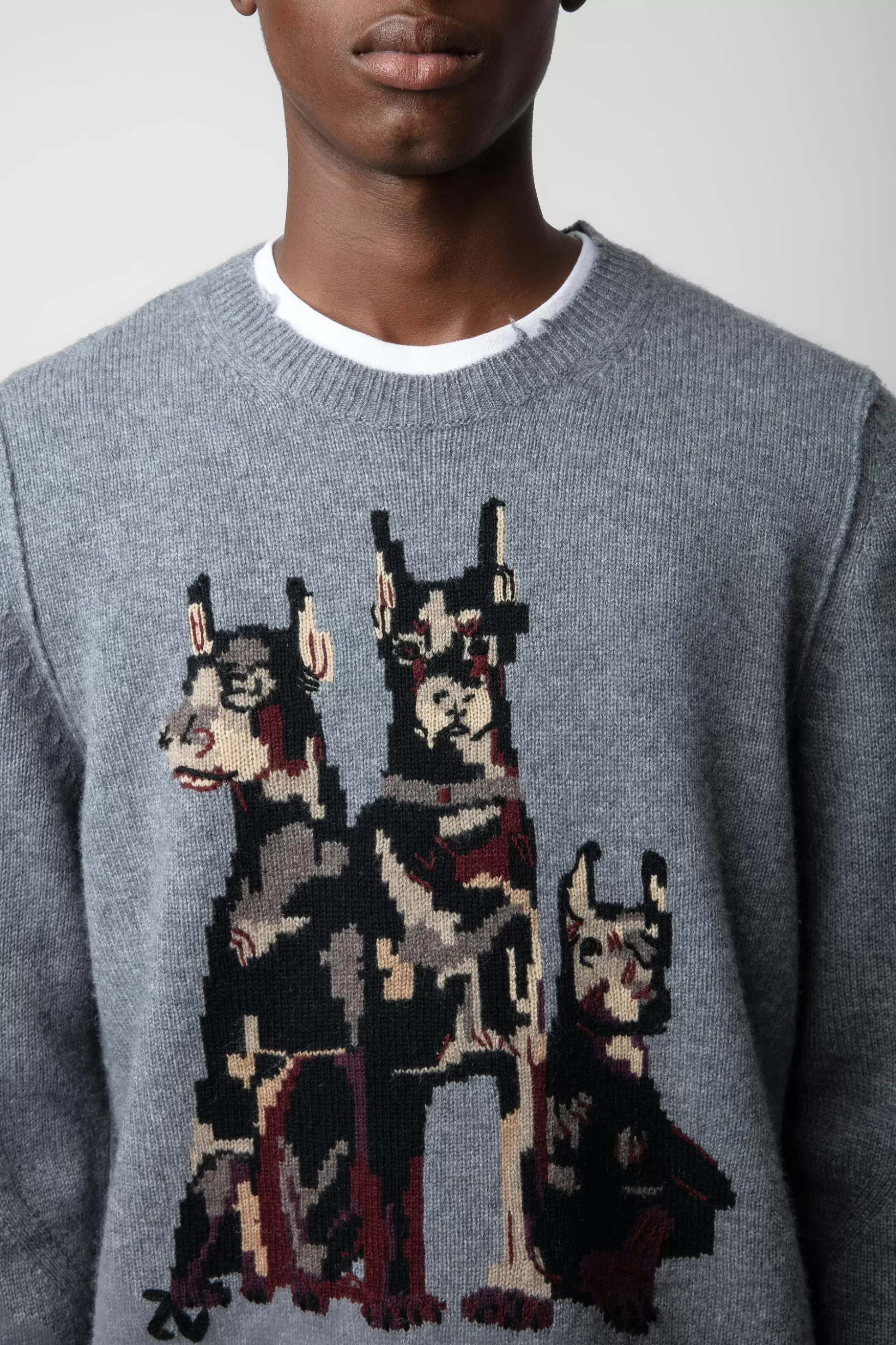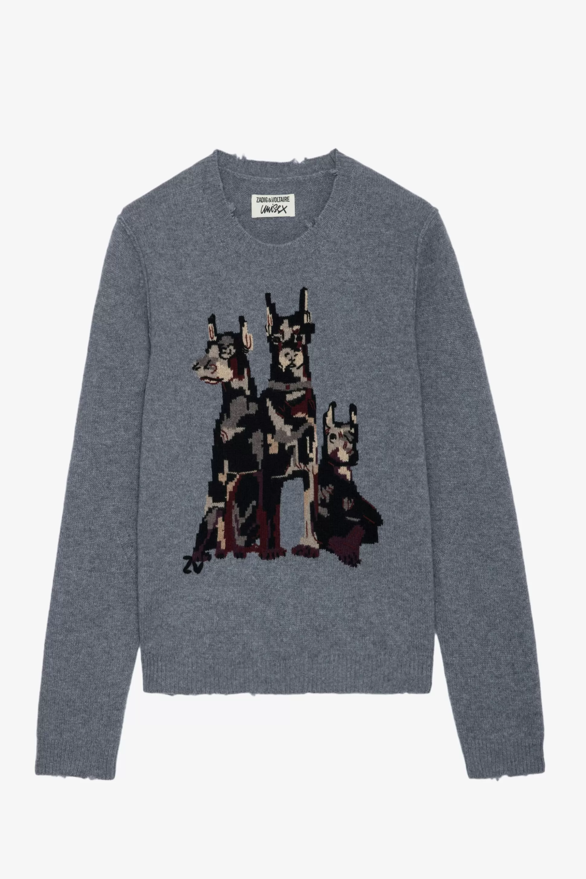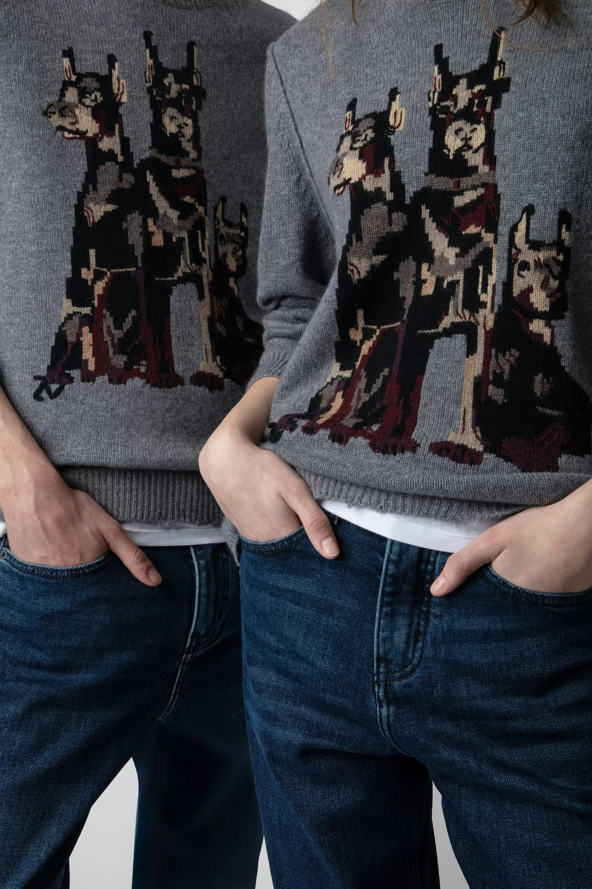 – Motif Doberman En Jacquard Intarsia Et Signature Pointelle Zv Sur Le Devant