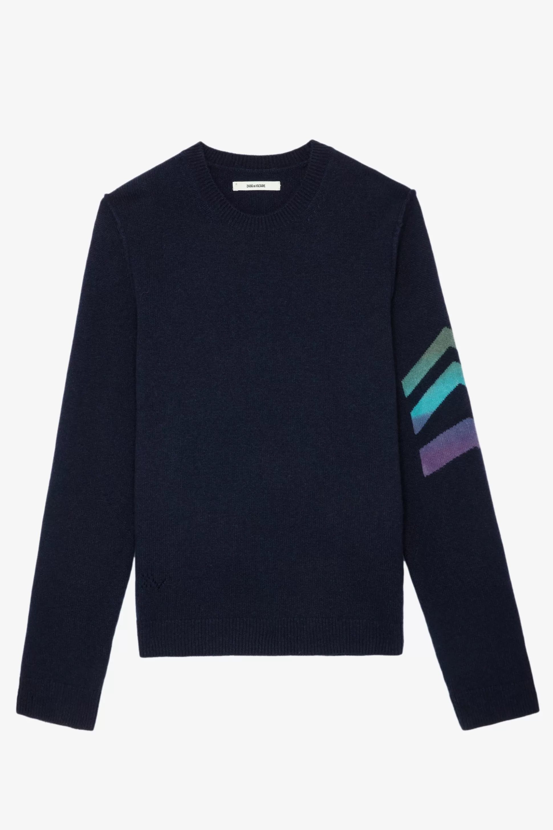– Pull En Cachemire Bleu Marine Encre – Encolure Ronde, Manches Longues Et Bords-Côtes – Flèches Tie-Dye Contrastées …