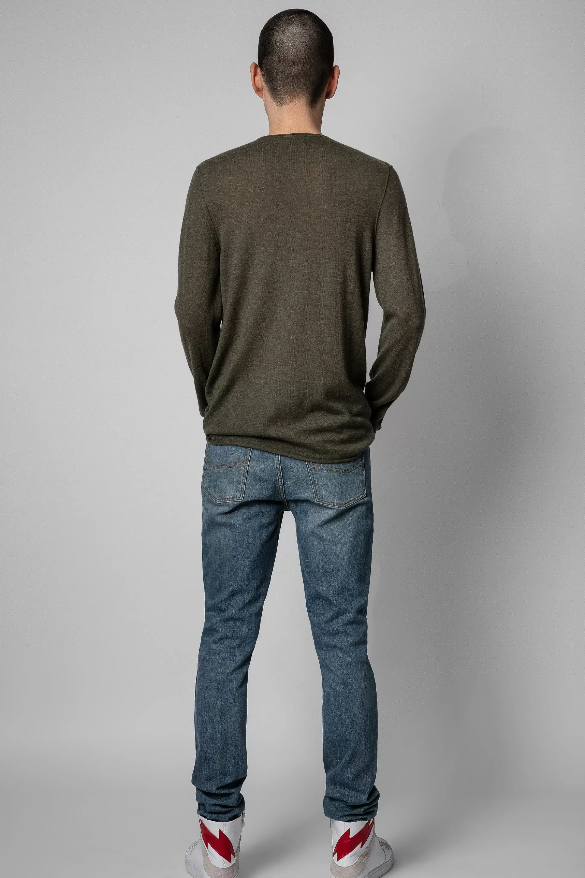 – Pull Homme En Cachemire Plumes Kaki Zadig&Voltaire