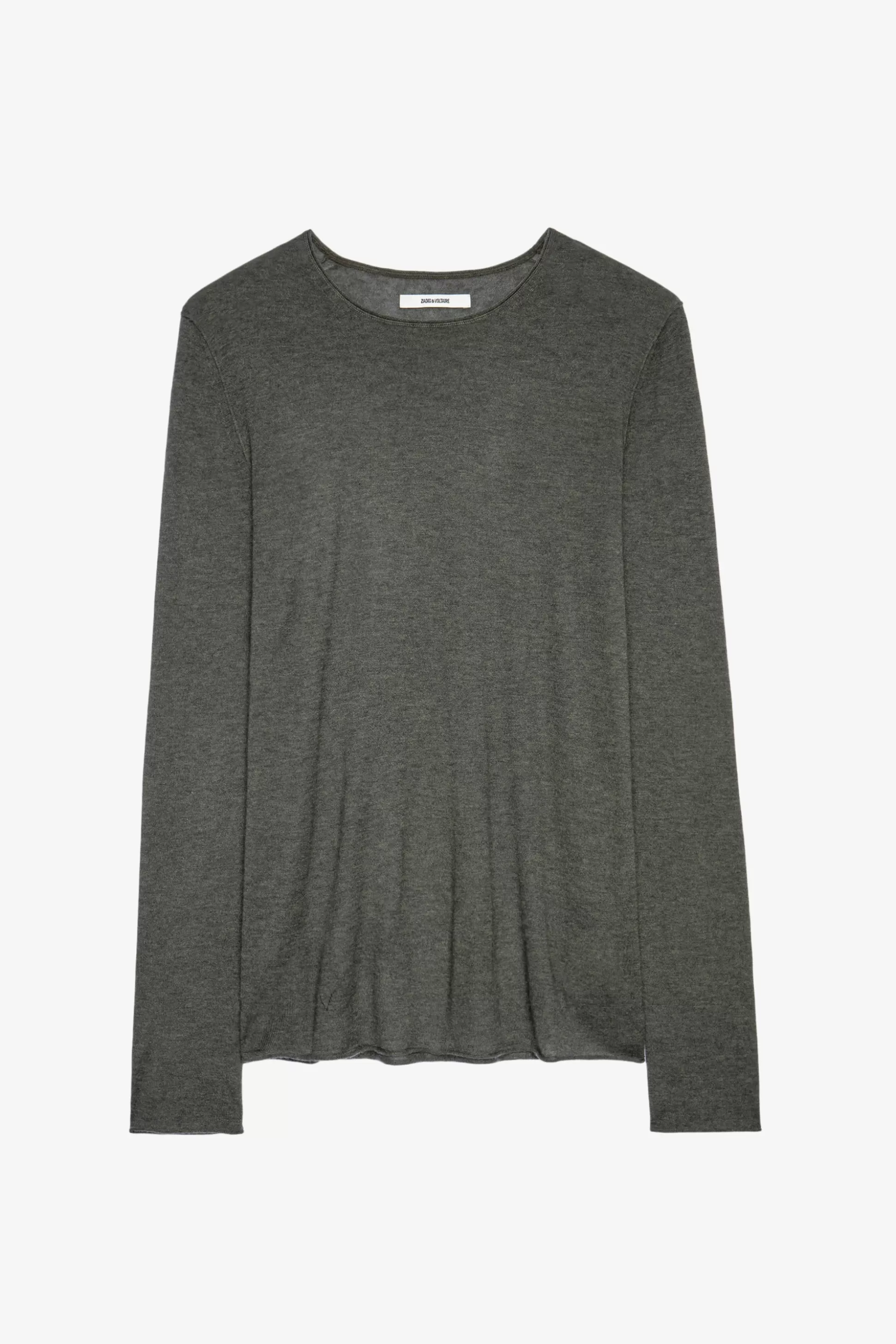 Pull En Cachemire À Col Rond Et Manches Longues.- Pull Homme En Cachemire Plumes Kaki Zadig&Voltaire – Col Rond – Manch…