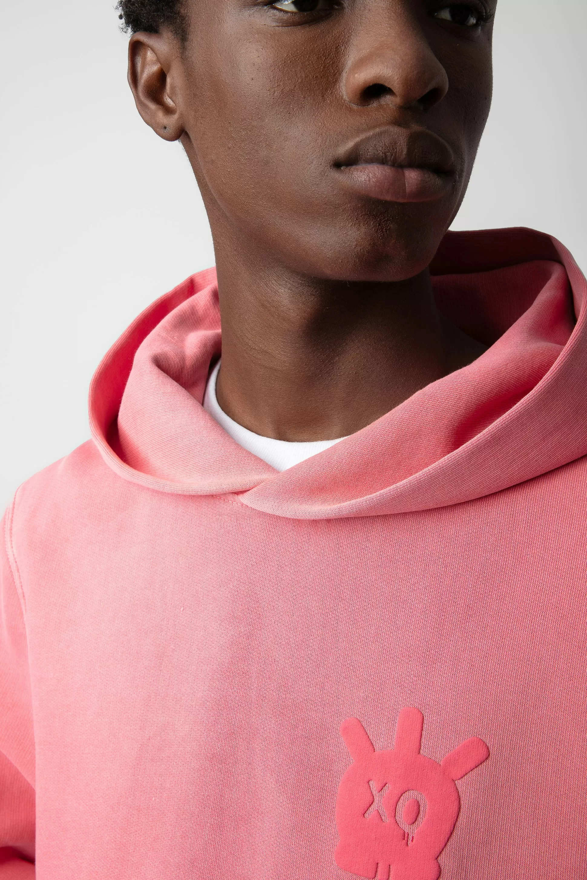 Sweat À Capuche En Coton Rubber Rose – Badge Tête De Mort Sur La Poitrine – Manches Longues, Bords-Côtes Et Poche Ava…