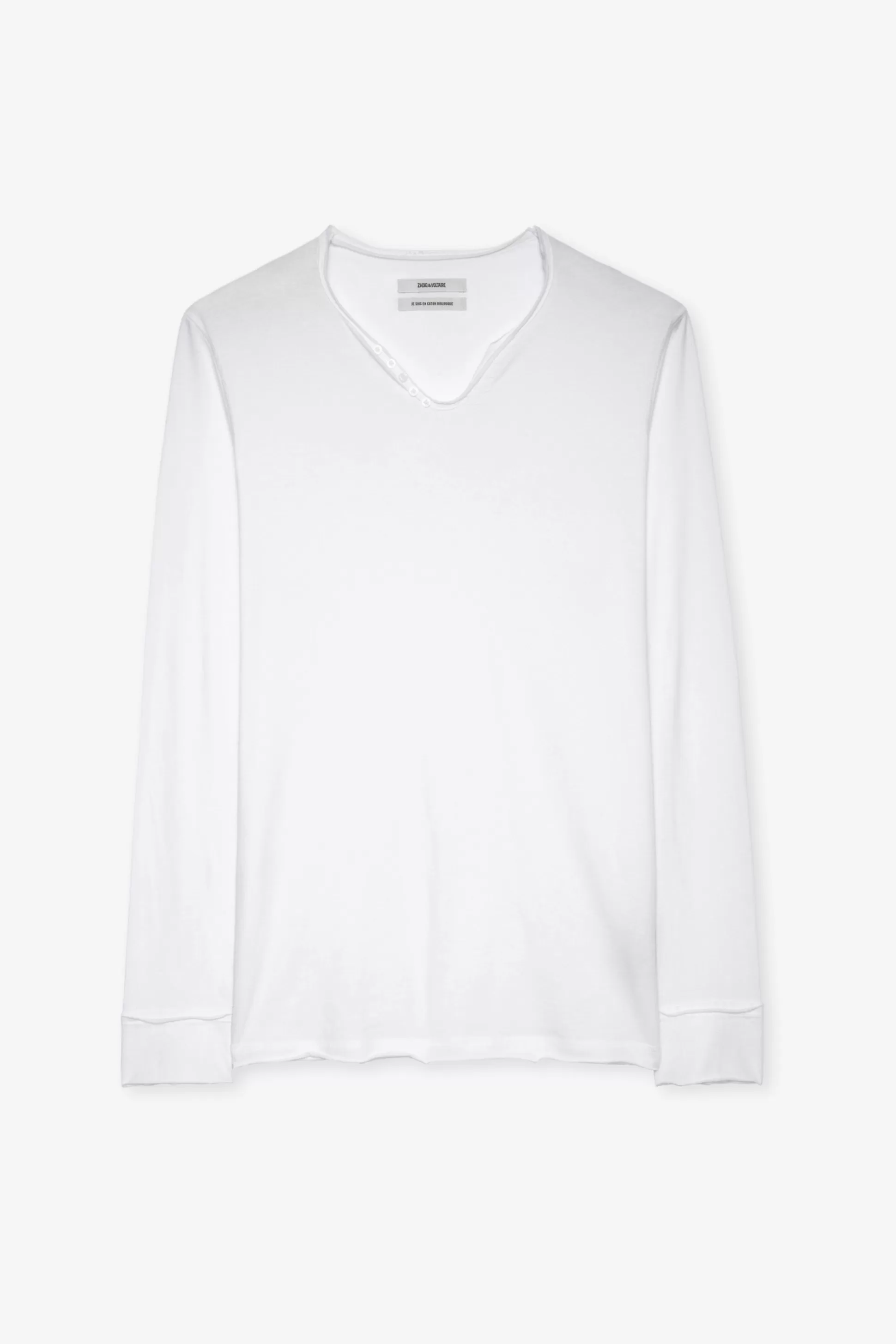 T-Shirt Henley Manches Longues En Coton Biologique Avec Broderie Z&V Sur La Manche.