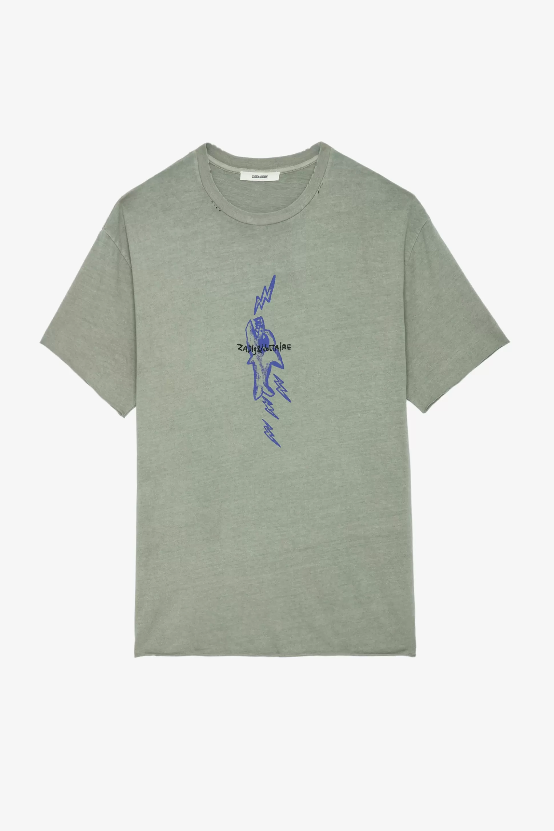 T-Shirt Homme Trellis En Coton Gris – Effet Vieilli – Imprimé Requin Et Signature Zadig&Voltaire Sur Le Devant- Encolur…