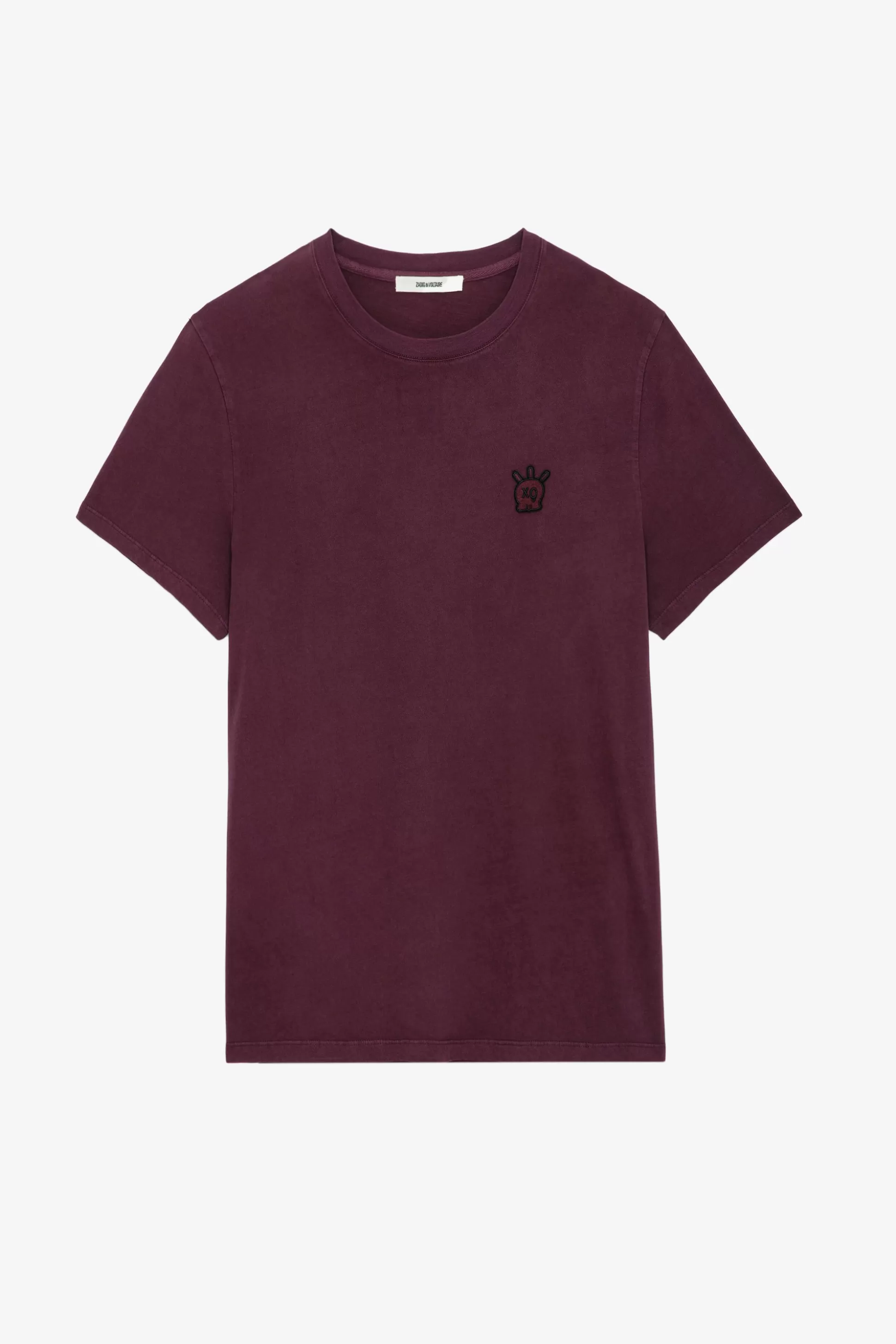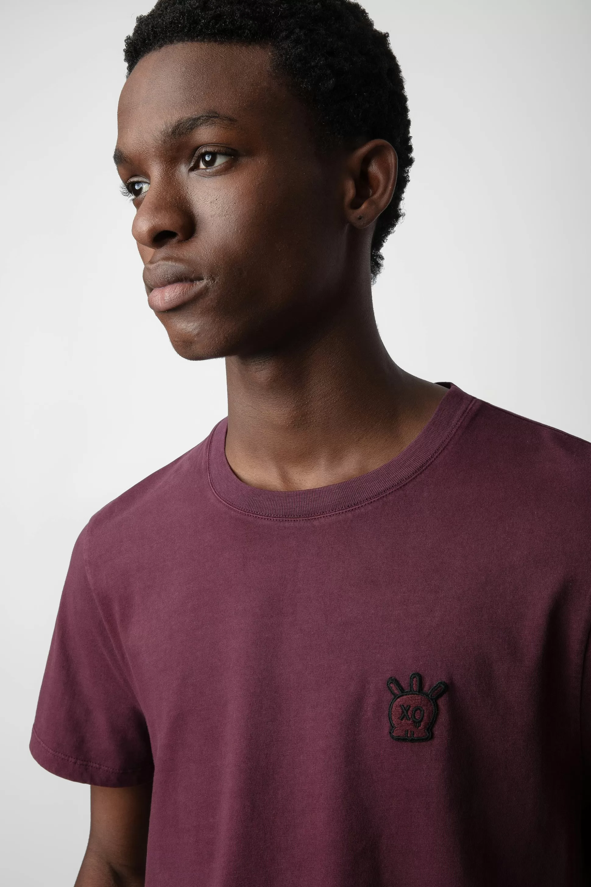 T-Shirt Homme Rouge Cerise En Coton Bordeaux – Patch Skull Xo Sur La Poitrine – Encolure Ronde Et Manches Courtes